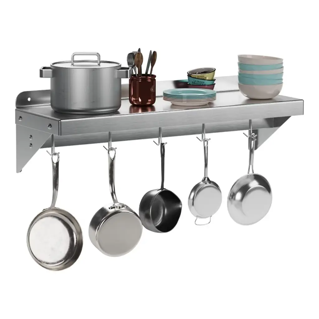 Stainless Steel Backsplash: Made of thickened 18 GA stainless steel material (1.2 mm thick) with a NO.4 brushed finish for durability and sturdiness. It is specifically designed to match current range hood models, adding a harmonious, modern style to your kitchen. Easy to Install: Simple structure with 10 pre-drilled holes, easy to install on the kitchen wall. It has increased stability after installation and will not fall off. The condiment holder and knife holder can also be conveniently mounted on the range's tailgate using the screws provided. Built-in Storage Shelf & Rack: This backsplash features a shelf, and six hooks for storing your spices, oils, and cooking utensils. Put your favorite cookware right within reach of your fingertips. Upgraded Knife Shelf: In addition to storage racks and shelves, the backsplash gives you a knife holder for knives. Multiple holes accommodate knives of different sizes. Keep your knives looking sharp and never miss a step with our high-quality backsplash. Wide Application: Our cook top backsplash keeps the wall behind the cooking surface away from oil splatters and offers a new look for your kitchen. This visually appealing unit fits into any setting. Perfect for your kitchen or cooking area. Package Content 1 x Range Backsplash 1 x Storage Shelf1 x Knife Shelf 5 x Hooks 1 x Accessories Kit 1 x User Manual