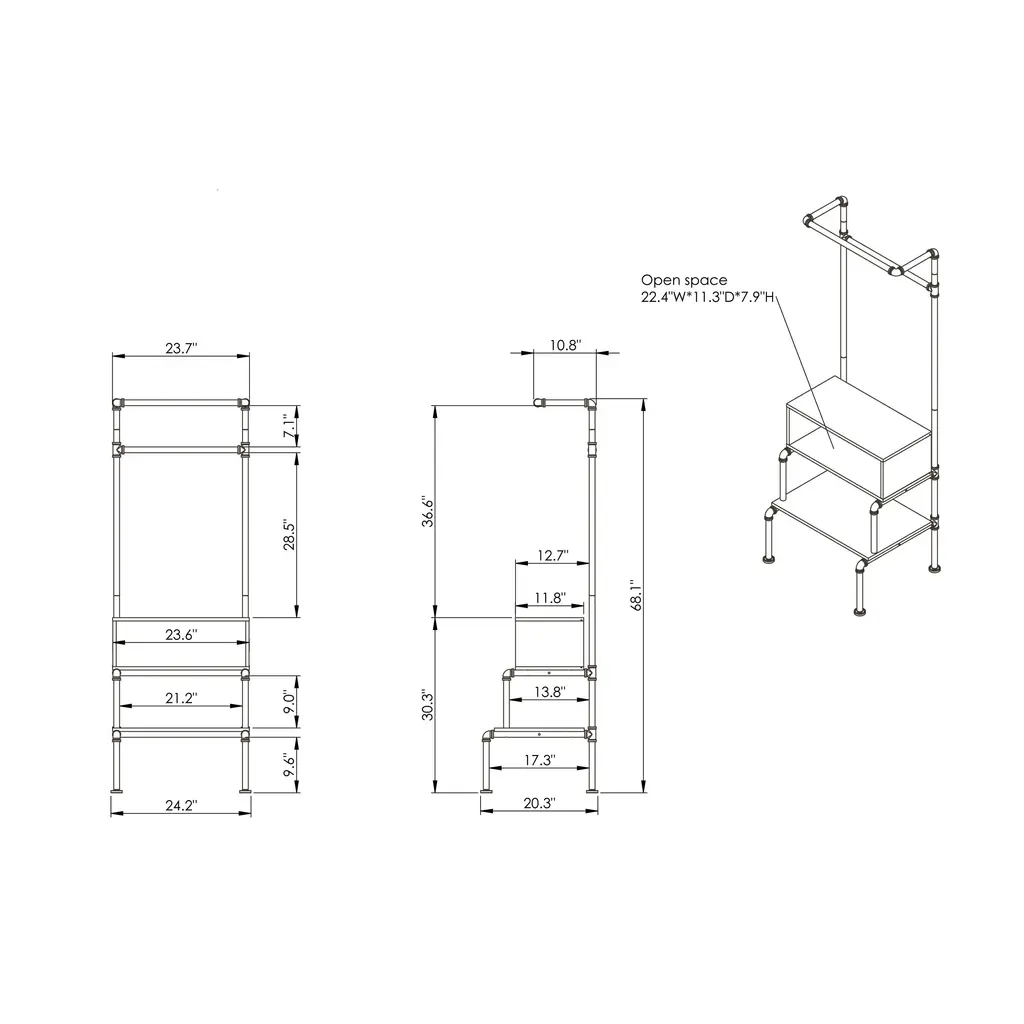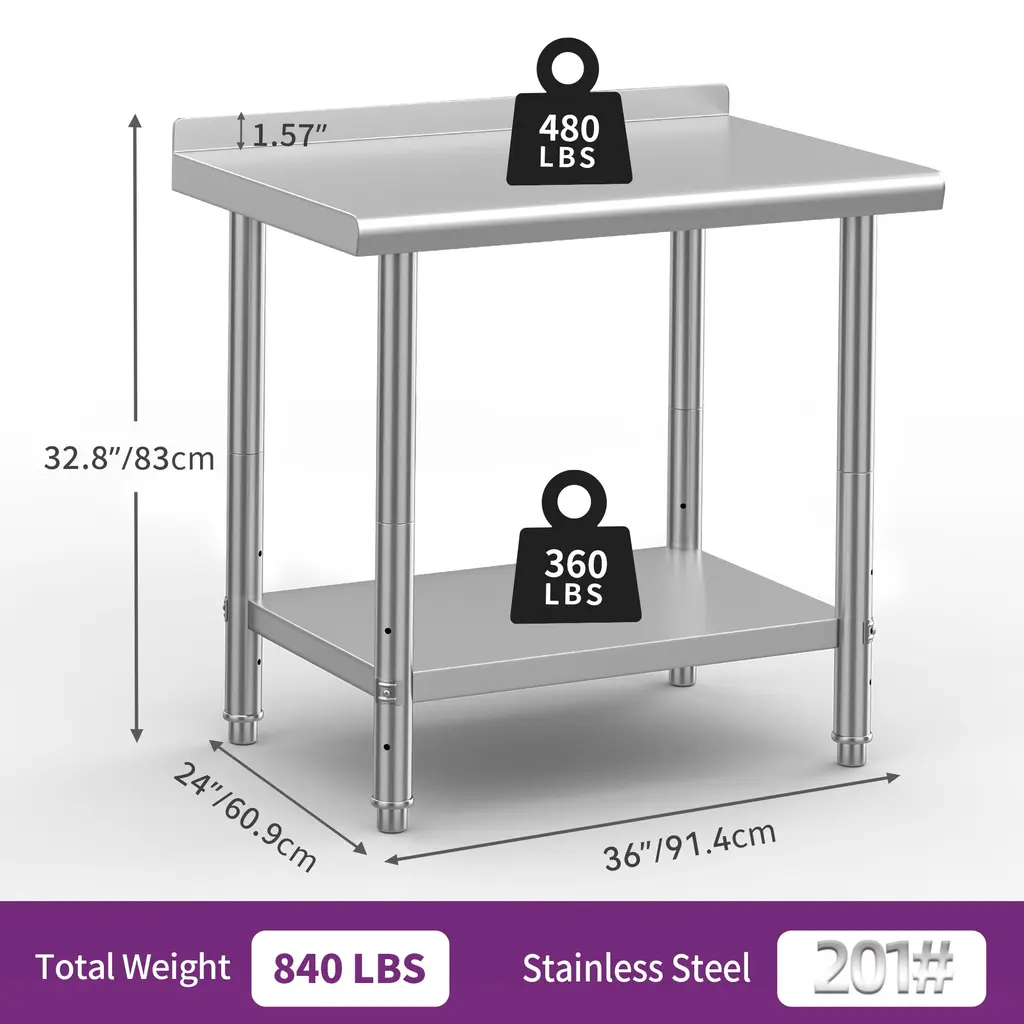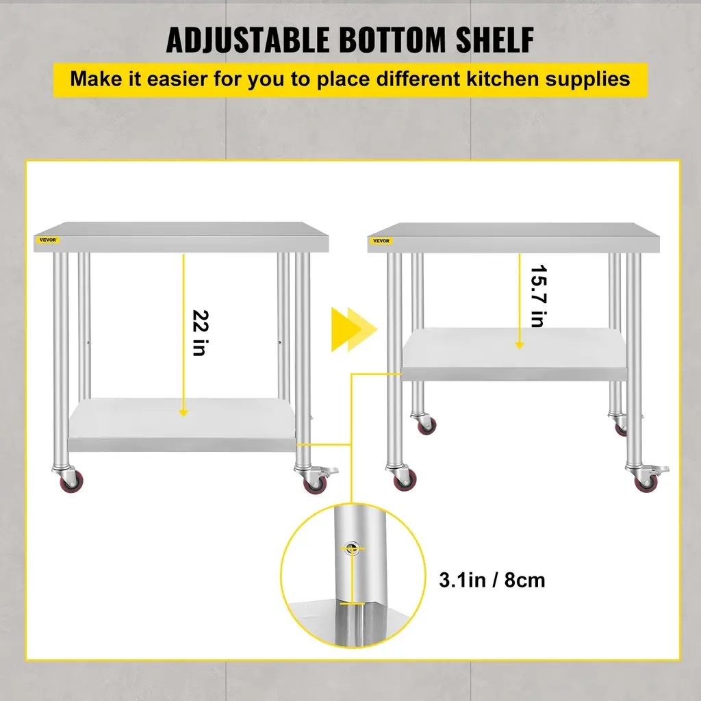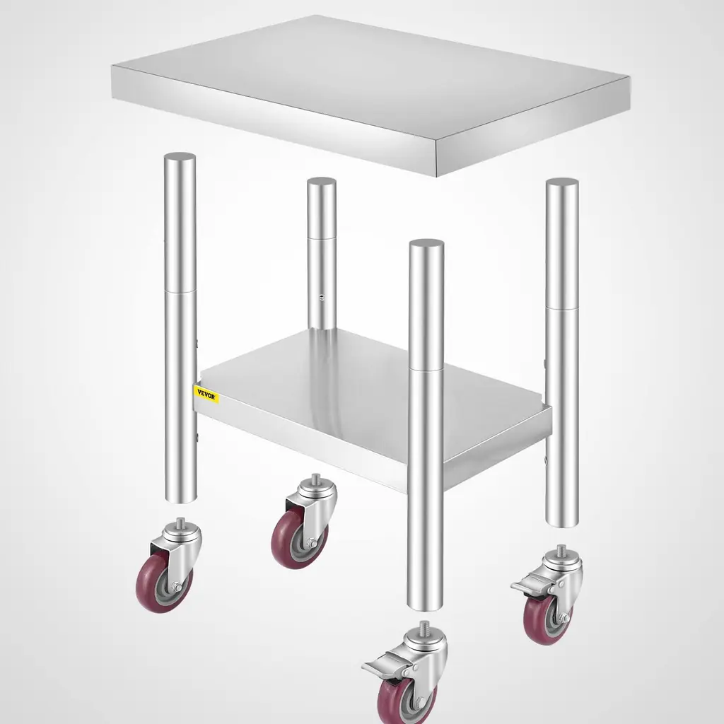 Vevor Stainless Steel Work Table Commercial Food Prep Worktable 3-Stage Adjustable Shelf With 4 Wheels - 24x12x32in