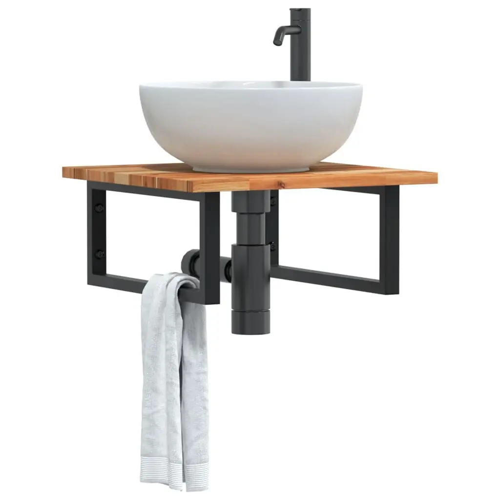 Vidaxl Basin Shelf Wall Mounted Steel And Solid Wood Acacia