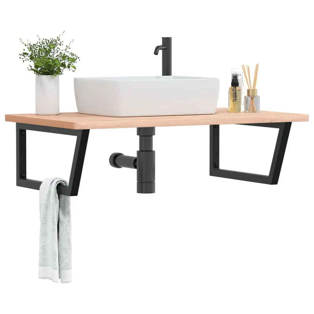 Vidaxl Basin Shelf Wall Mounted Steel And Solid Wood Beech
