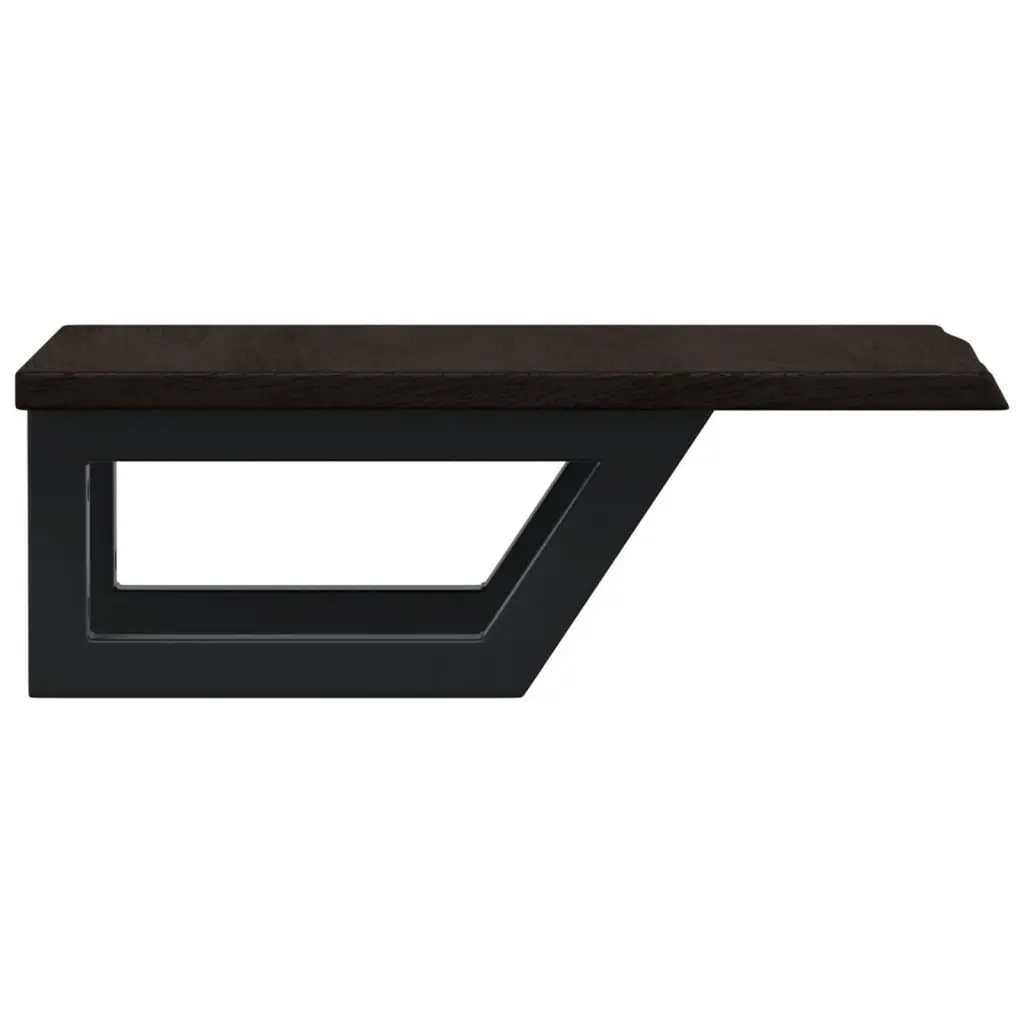 The wall mounted basin shelf securely attaches to the wall, providing an elegant and space-saving solution for your bathroom.Sturdy and long-lasting: This basin shelf is combined with a steel structure and a solid oak wood top, making it sturdy, stable, and long-lasting.Space-saving: The floating basin shelf has ample space to store creams and small items. Thanks to the trapezium shape, you can hang towels or other things on the support to save space.Easy to use: The countertop comes undrilled to allow the basin to be mounted on the left, right, or in the centre, depending on your room's requirements. Thanks to the pre-drilled holes in the holder, it can be easily assembled with the tabletop and mounted on the wall.Wide applications: Thanks to its modern design, it provides additional space for various types of bathrooms.Good to know:Screws are not included, you can purchase the screws separately based on the information provided below.Wall attachment: 2 pcs M8 expansion screws per bracketWooden top: 2 pcs M5x18 screws (T=2) or 2 pcs M5x20 screws (T=2,5/1.6 ") per bracketAs a natural product, wood may show knots and imperfections that we fill with black fillings to ensure a smooth appearance.