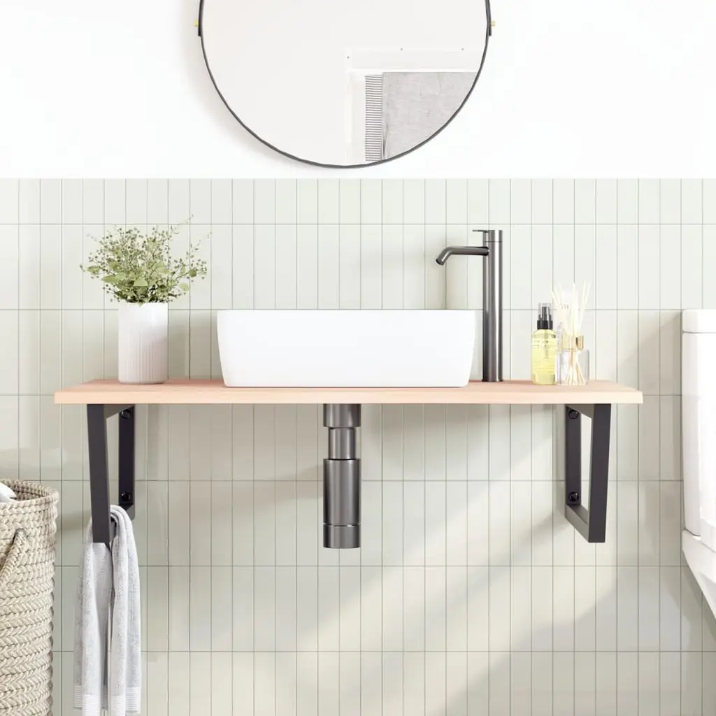 The wall mounted basin shelf securely attaches to the wall, providing an elegant and space-saving solution for your bathroom.Sturdy and long-lasting: This basin shelf is combined with a steel structure and a solid oak wood top, making it sturdy, stable, and long-lasting.Space-saving: The floating basin shelf has ample space to store creams and small items. Thanks to the trapezium shape, you can hang towels or other things on the support to save space.Easy to use: The countertop comes undrilled to allow the basin to be mounted on the left, right, or in the centre, depending on your room's requirements. Thanks to the pre-drilled holes in the holder, it can be easily assembled with the tabletop and mounted on the wall.Wide applications: Thanks to its modern design, it provides additional space for various types of bathrooms.Good to know:Screws are not included, you can purchase the screws separately based on the information provided below.Wall attachment: 2 pcs M8 expansion screws per bracketWooden top: 2 pcs M5x18 screws (T=2) or 2 pcs M5x20 screws (T=2,5/1.6 ") per bracketAs a natural product, wood may show knots and imperfections that we fill with black fillings to ensure a smooth appearance.