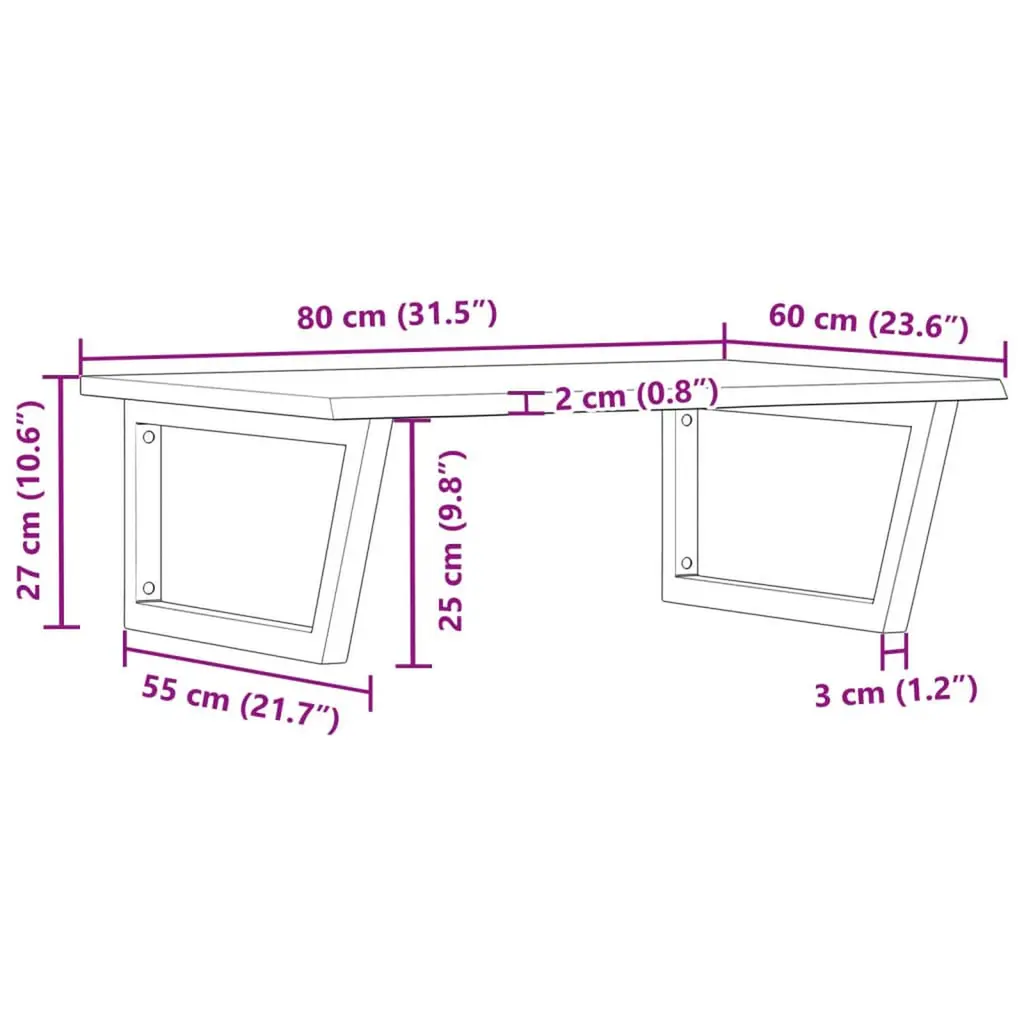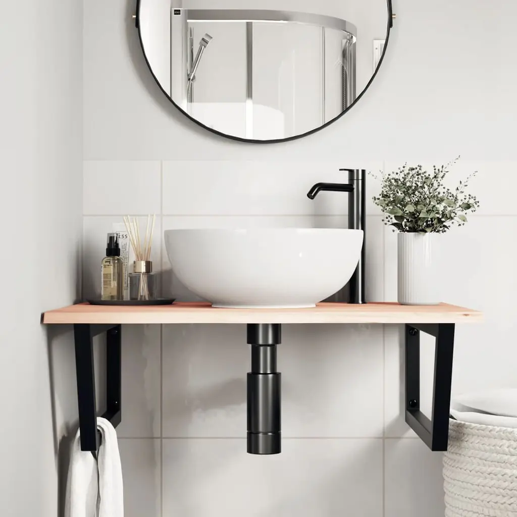 The wall mounted basin shelf securely attaches to the wall, providing an elegant and space-saving solution for your bathroom.Sturdy and long-lasting: This basin shelf is combined with a steel structure and a solid oak wood top, making it sturdy, stable, and long-lasting.Space-saving: The floating basin shelf has ample space to store creams and small items. Thanks to the trapezium shape, you can hang towels or other things on the support to save space.Easy to use: The countertop comes undrilled to allow the basin to be mounted on the left, right, or in the centre, depending on your room's requirements. Thanks to the pre-drilled holes in the holder, it can be easily assembled with the tabletop and mounted on the wall.Wide applications: Thanks to its modern design, it provides additional space for various types of bathrooms.Good to know:Screws are not included, you can purchase the screws separately based on the information provided below.Wall attachment: 2 pcs M8 expansion screws per bracketWooden top: 2 pcs M5x18 screws (T=2) or 2 pcs M5x20 screws (T=2,5/1.6 ") per bracketAs a natural product, wood may show knots and imperfections that we fill with black fillings to ensure a smooth appearance.