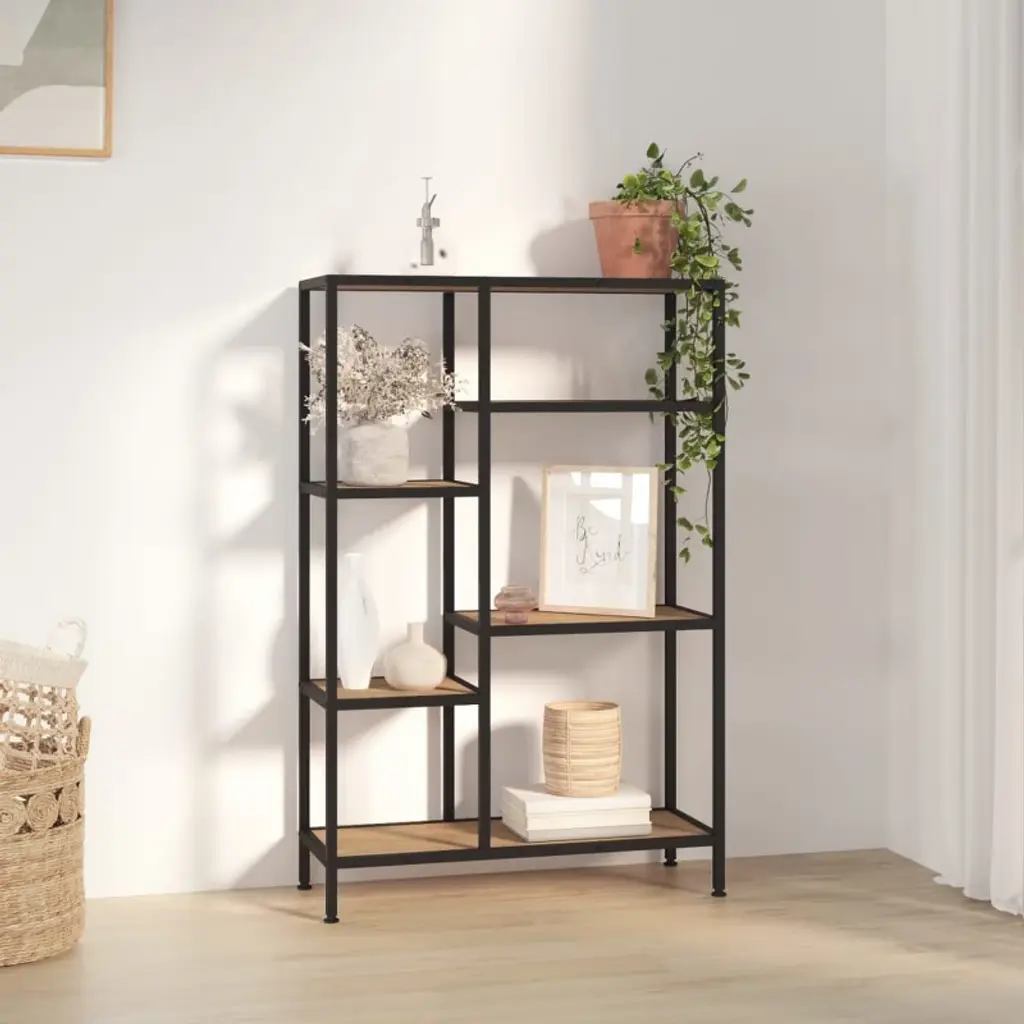 Vidaxl Book Shelf Light Brown And Black Engineered Wood, Steel - Light Brown - 47.2"