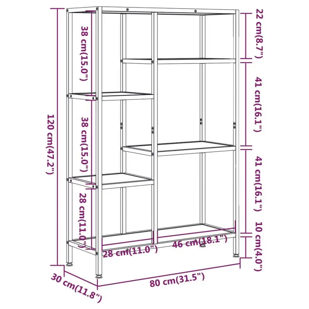 This industrial-style freestanding bookshelf combines engineered wood shelves with a sturdy black steel frame, offering a stylish and practical storage solution for your home or office. The open-back design and asymmetrical shelf layout create a modern look, while the visible wood grain adds warmth to any space.Key Features• Solid construction with engineered wood shelves and a durable steel frame• Modern, open-back design with a matte finish for a chic appearance• Adjustable leveling feet for stability on uneven floors• Easy-to-clean surfaces for low-maintenance care• Safe design with the option to anchor to the wall for added securityVersatile Storage & Style• Suitable for living rooms, bedrooms, offices, or any indoor space• Asymmetrical shelf layout provides varied compartment sizes for books, decor, and more• Available in two colors: Light brown and Dark brown• Two height options: 47.2" and 70.9"Product Dimensions & Details• Dimensions (W x D x H): 11.8 x 31.5 x 47.2 in or 11.8 x 31.5 x 70.9 in (depending on selected height)• Shelf thickness: 0.6 in• Leg height: 4 in• Weight: 36.27 lbs (47.2" height) / 47.4 lbs (70.9" height)• Maximum weight capacity: 110.2 lbs (33 lbs per shelf)• Assembly required (includes shelf parts and assembly guide)• SKU: 336357, 336358, 336359, 336360What's Included• Bookshelf unit• Assembly guideEnhance your living space with this modern bookshelf, perfect for organizing your favorite books, displaying decor, or storing essentials. Choose from light brown or dark brown finishes and two height options to best fit your room and style.