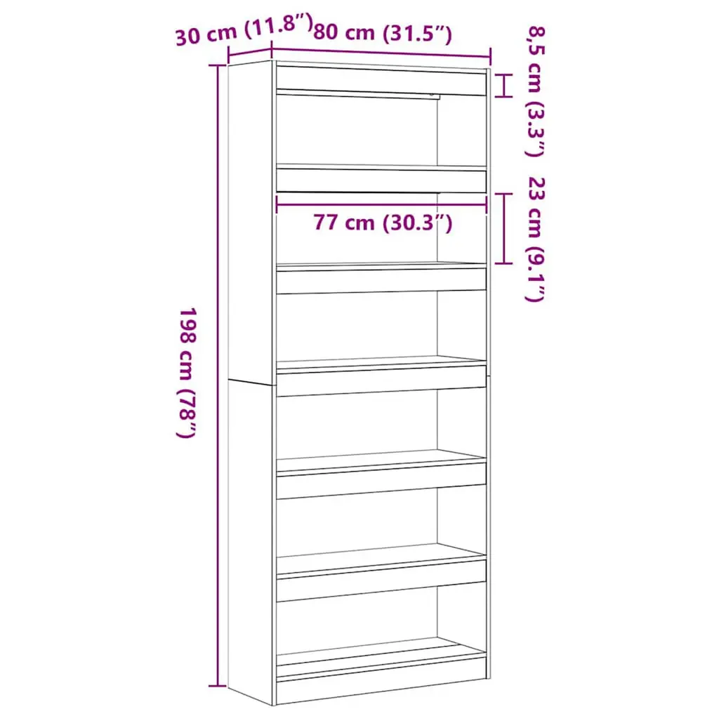 Vidaxl Bookcase With Shelf Black 80 X 30 X 198 Cm Engineered Wood