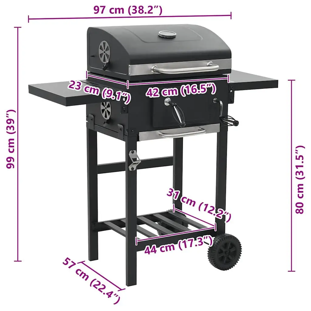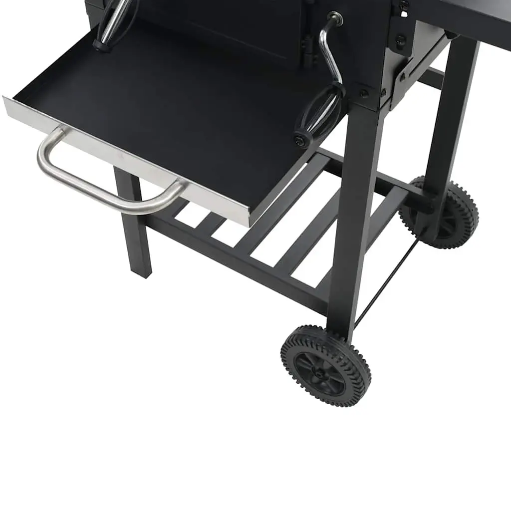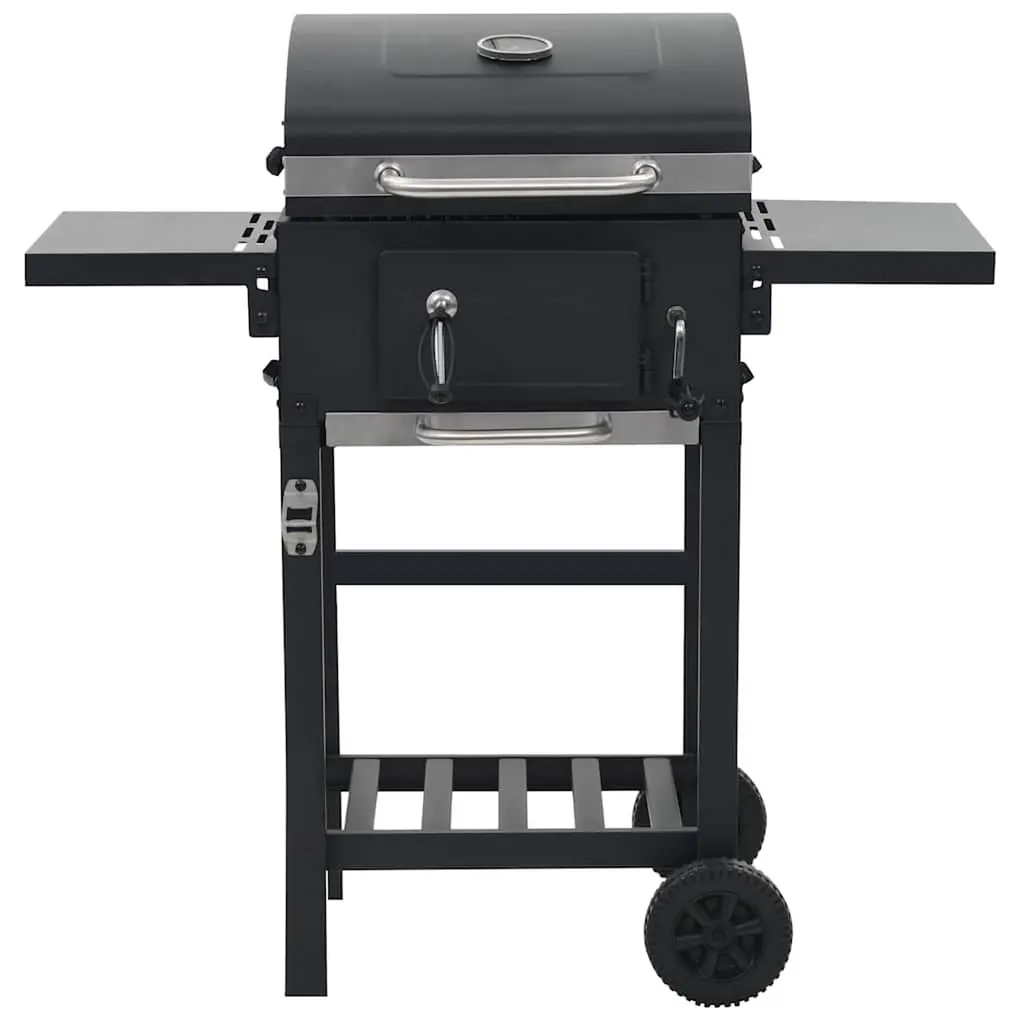 Vidaxl Charcoal-Fueled Bbq Grill With Bottom Shelf Black