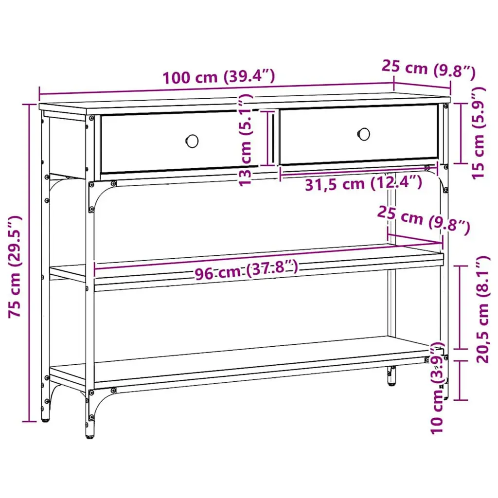 With a cool industrial touch, this console table nails both function and design. If you're into that warehouse-chic look, this is perfect for minimalist style combined with real practicality. Its slim design means it can sit nicely against a wall, making it great for showcasing your favorite things or keeping stuff tucked away. The smooth engineered wood and sturdy iron legs create a lovely contrast that adds character to any room. It's just right for living rooms looking for a standout piece that goes well with both classic and modern styles. Robust Materials This console table is made from tough engineered wood and iron. The combo gives it a sturdy build that can handle daily use. Plus, it looks good and lasts ages, making it a solid addition to any room.Functional Shelves The shelves provide loads of room for storage or display. Whether it's books or trinkets, the simple design keeps everything organized and easy to reach. With the engineered wood, you get stability but also flexibility in how you arrange things.Adjustable Levelers It's got levelers that adjust to keep it stable on uneven floors, so it stays secure no matter what. Super handy for older houses or tricky floors, making sure it sticks to the right spot.Perfect for Living Rooms Plop this narrow, stylish piece against the wall to fill up space with its understated good looks. Whether you want to show off art, drop your keys, or stash daily bits and bobs, it fits right in and enhances the room's vibe.Maintaining Its Charm Easy to keep clean, just a gentle wipe with a cloth will do. No need for harsh cleaners. To keep it looking sharp, avoid abrasives and follow the assembly instructions to ensure it stays lovely over time.