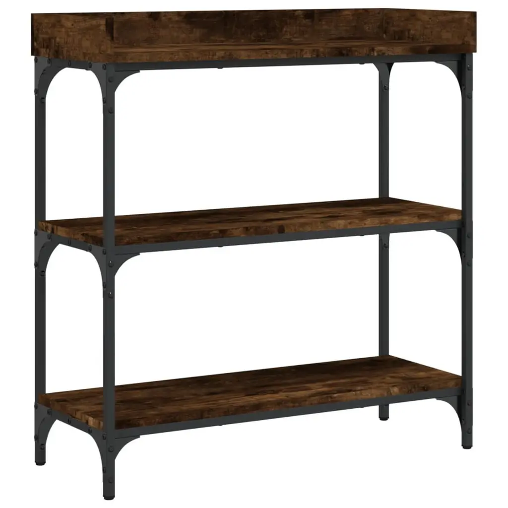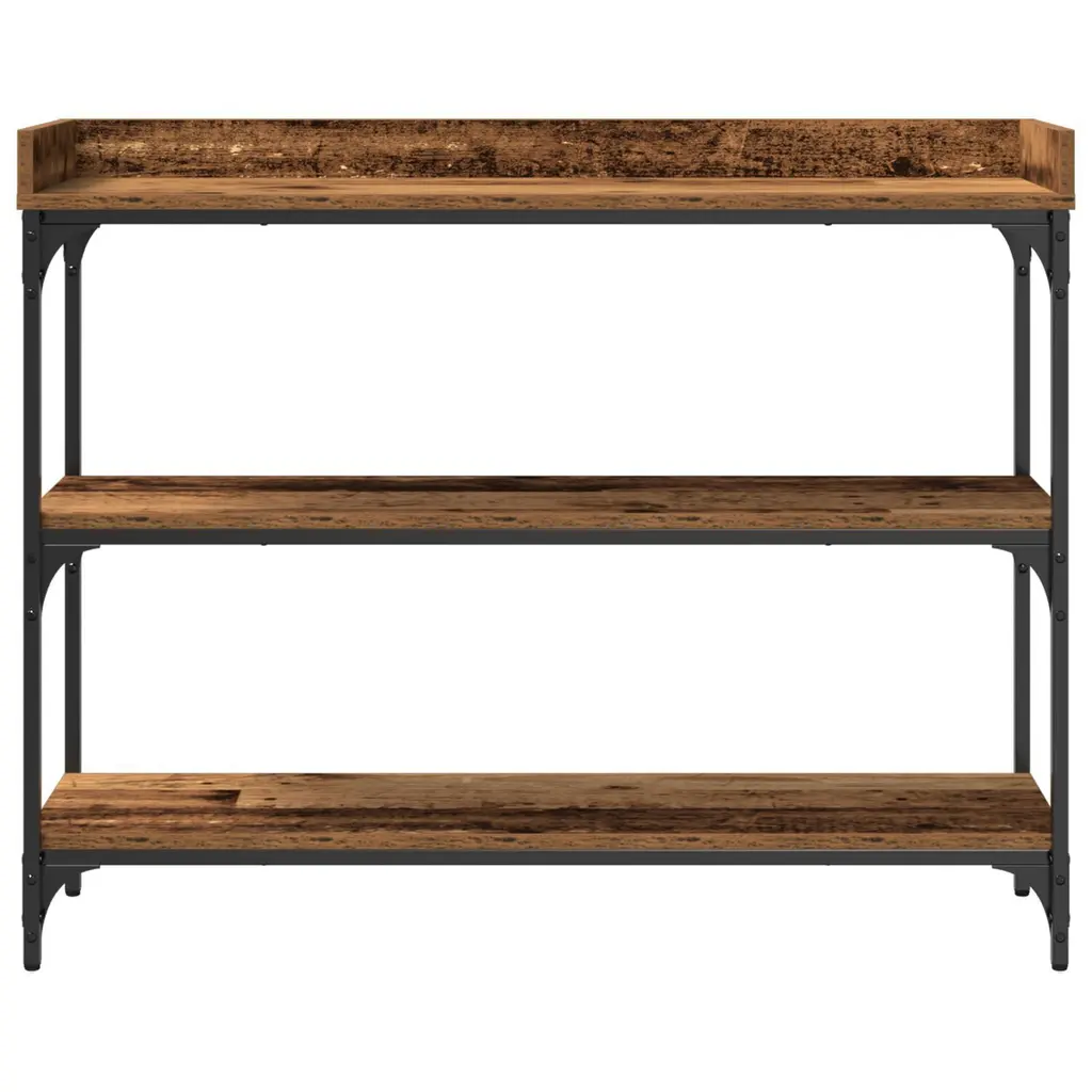This Industrial Console Table adds a touch of urban flair to your space. It’s perfect for the living room, blending style and practicality with its rectangular shape that fits right against walls. The bold black color matches its industrial design, and the sturdy engineered wood and iron construction make it a durable choice. Whether you want to show off your stuff or just need a bit more storage, this table’s charm and usefulness make it a great fit for all sorts of settings. Materials: Crafted from a mix of engineered wood and metal, this console table nicely combines style with durability. The wood top gives a smooth finish, while the iron legs make it strong and stable—perfect for everyday use.Included Components: This table features a rectangular surface that’s perfect for all sorts of decorative and practical uses. The board shelves offer loads of storage space for books, frames, or knick-knacks. The steel frame adds a solid touch, bringing that industrial vibe. It’s flexible in terms of placement and doesn’t need wall support, so you can put it wherever you like.Features / Function / Design: With adjustable levelers, this console table stays steady even on slightly uneven floors. These feet keep it balanced and stop your things from slipping off. It’s designed to fit seamlessly into any space and looks great in both modern and vintage settings.Recommended Uses: Perfect for living rooms, this console table makes a great accent piece in hallways, entryways, or behind sofas. With a spacious surface, it’s great for displaying photos or art, and it’s handy for keeping keys and mail. Its versatility makes it essential for home and office use, catering to all sorts of storage needs.Care & Maintenance: To keep it looking sharp, put the table together according to the instructions and avoid harsh cleaners. A regular dust with a dry cloth will help maintain its fresh look and protect the materials. This care routine will ensure it stays beautiful and useful in your home.