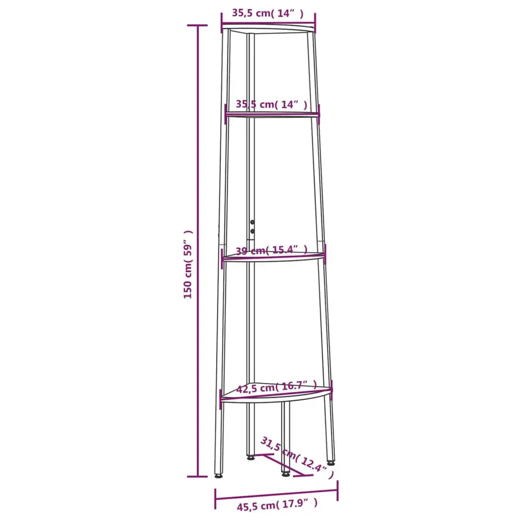 Vidaxl Corner Shelf Light Brown And Black Engineered Wood, Steel 4-Tier