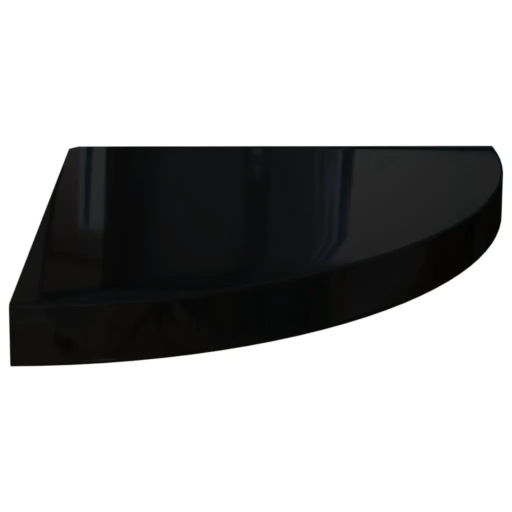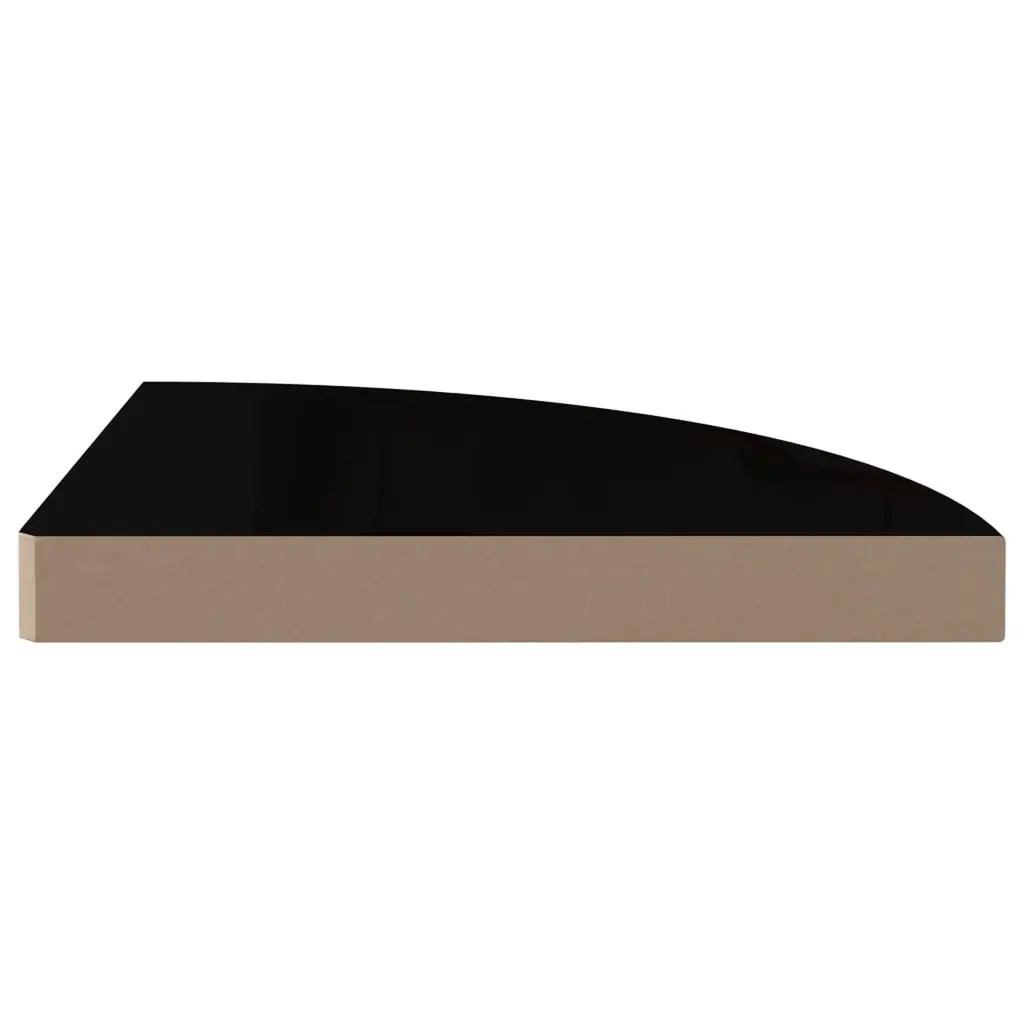 This floating corner shelf set is just the thing for any modern home or office, turning unused spaces into stylish display areas. Each triangular shelf is made from high-gloss MDF, giving it a sleek and contemporary vibe while providing enough room for your favorite books, decor, or personal collections to shine and bring balance to your interior design. Sleek Modern Design: The high-gloss black finish not only enhances the shelf's surface but also elevates the overall decor of your room, making it a stylish focal point.Efficient Space Utilization: Designed to fit seamlessly into corners, these shelves maximize your wall space without bulk, making them perfect for smaller rooms.Durable Material: Made with sturdy MDF, these shelves can hold the weight of your favorite books and cherished memories without looking shabby.Easy Installation: Set up the shelves with the included invisible mounting system to keep your wall looking neat while providing solid support.Versatile Functionality: Ideal for various places like living rooms, bedrooms, or offices, these shelves give a chic way to display your cherished items.
