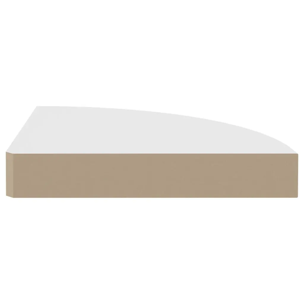 This floating corner shelf is a great solution that looks good and works well in any room of your home. Made with a minimalist approach, it fits perfectly into corners, making it ideal for showing off books, plants, or decorative bits without taking up valuable floor space. Space-Saving Design: Perfectly crafted to utilize corner areas that often go unnoticed. This unique design allows for efficient use of space while providing a charming display area.Quality Material: Made from durable honeycomb MDF, ensuring it can support a max weight of 11 lbs, suitable for various decorative needs without compromising strength.Easy Installation: Comes with mounting hardware, making it convenient to install in your living room, bedroom, or home office. Quick setup means you can enjoy your new decor in no time.Stylish Aesthetic: The matte white finish enhances modern decor and blends well with most interior themes, adding a touch of elegance to any corner.Multi-functional Use: Ideal for displaying collectibles, books, or even as a CD rack. Its versatility means it can easily adapt to your changing decor needs.