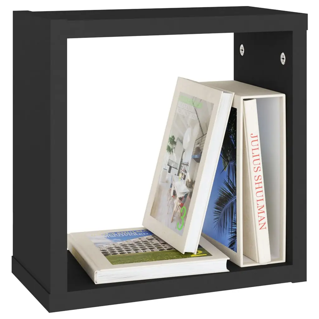 Vidaxl Cube Shelf Set Of 2 Black Engineered Wood Small Wall Shelf