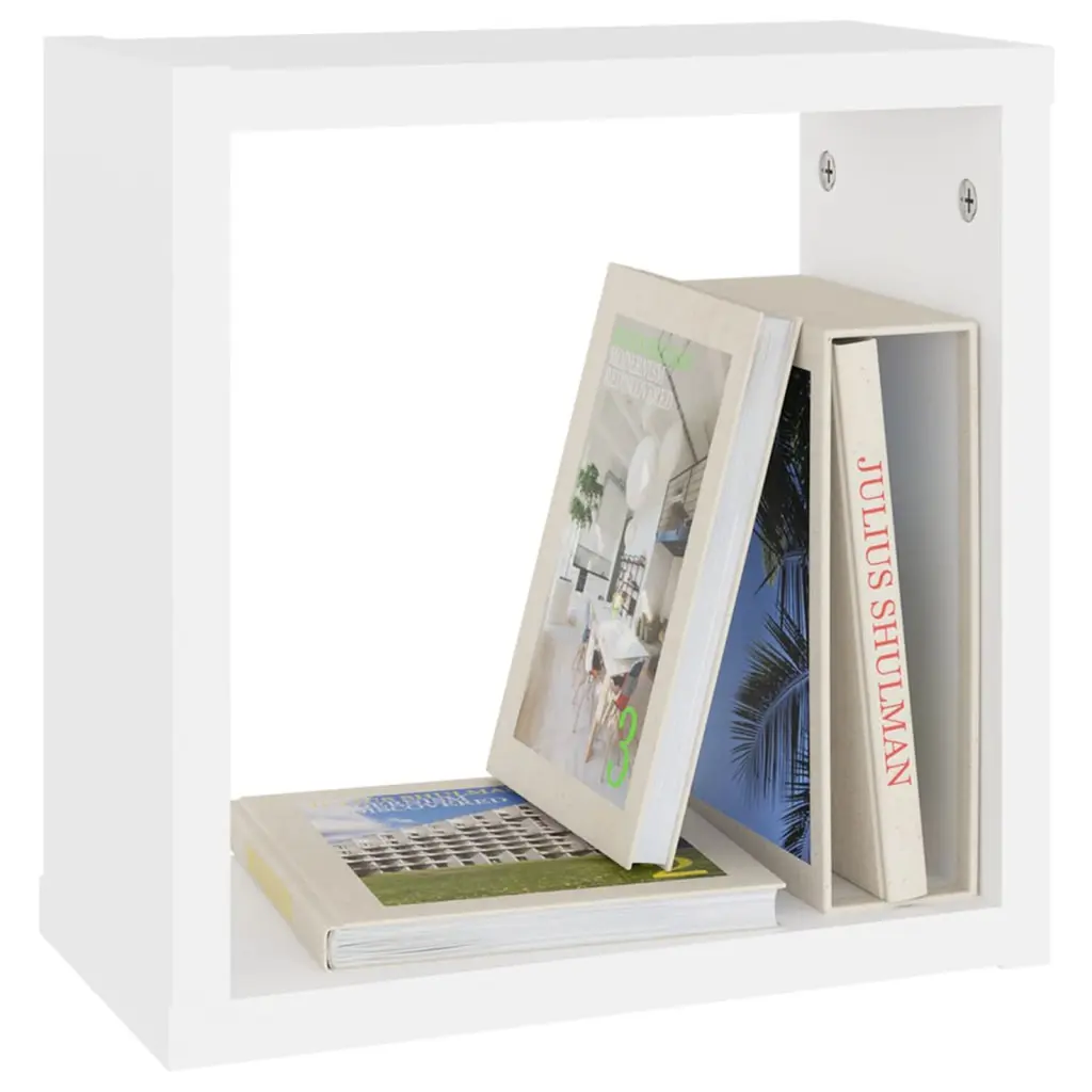 This set of two wall-mounted cube shelves is designed to brighten up your home decor while saving space. Blending convenience with a minimalist vibe, these shelves provide a stylish way to organize and show off your top items, making them a top pick for any room. Space Saving Design: The wall-mounted setup helps free up floor space, making it great for small pads or rooms where every bit counts. Using vertical space creates a more open feel.Versatile Use: Use these cube shelves for stashing spice jars in the kitchen or displaying photo frames in the living room. Their flexibility makes them perfect for any room in the house.Sturdy Material: Made from top-notch engineered wood, these shelves are both reliable and a cinch to clean. The smooth matte finish gives a modern look that suits different decor styles.Minimalist Aesthetic: The plain white design means these cube shelves blend in effortlessly with any decor, providing a fresh and tidy look that's easy on the eyes.Simple Installation: These shelves come with everything you need for hassle-free mounting, so you can display your belongings in no time. Perfect for DIY buffs who like keeping it practical as well as stylish.