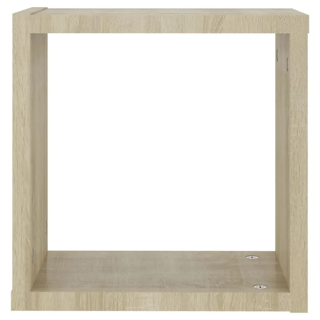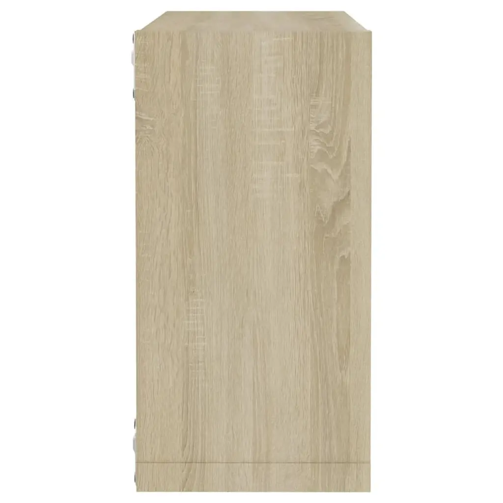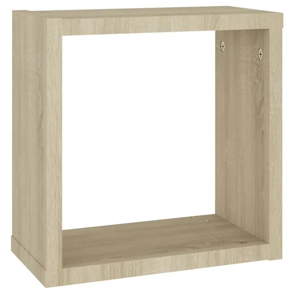 This Sonoma Oak Wall Cube Shelf set gives you a stylish and practical storage solution for modern living spaces. Perfect for both contemporary homes and offices, these cube shelves let you show off books, decorative items, or photos. Their clean lines and smooth finish add a fresh touch that enhances any decor while helping you make the most of your interior space. Stylish Wall Mount: Mounting these shelves on the wall saves precious floor space while bringing a modern and open vibe to any room.Quality Material: Made of sturdy engineered wood, these shelves promise durability and are easy to keep clean. Just a wipe with a damp cloth is all they need.Functional Storage: With their cubic design, these shelves offer lots of storage and also act as a display area for your favorite items, perfect for jazzing up your living room or bedroom.Easily Customizable: The individual cube shelves can be arranged in different ways, so you can set them up just how you want to suit your style and space.Multi-Purpose Use: Great for living rooms, bedrooms, or kitchens, these cube shelves add functionality while showing off your personal touch in every part of your home.