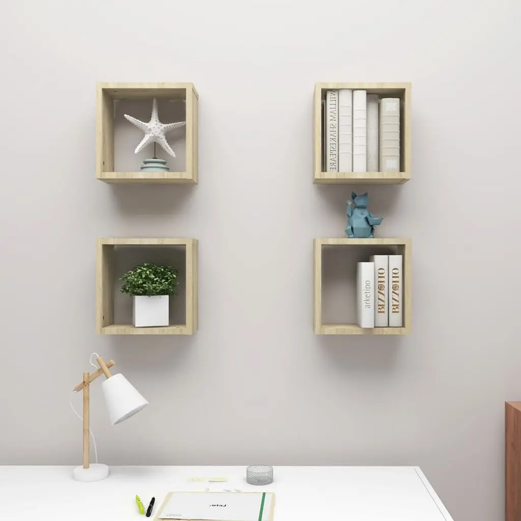 Vidaxl Cube Shelf Set Of 4 Sonoma Oak Engineered Wood Medium