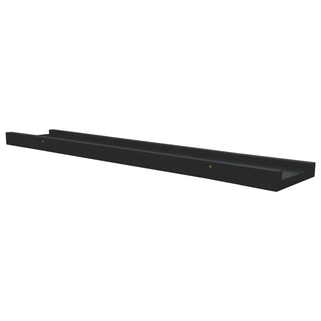 This Picture Frame Ledge Shelf is a stylish and practical addition to your living room. It’s made for holding and showcasing your beloved photos and art while its minimalist vibe makes any wall look fresh and modern. Space Saving: The wall-mounted design means you can maximize your available floor space while providing a stylish solution for displaying your favorite items.Sleek Appearance: With a smooth lacquered black finish, these shelves seamlessly blend with your existing decor, providing an elegant way to show off your most treasured photographs.Durable Construction: Made from high-quality engineered MDF, this shelf is lightweight yet sturdy, ensuring it provides a reliable platform for your items.Easy Installation: Each shelf comes with all the necessary mounting bits included, making setup quick and easy for anyone wanting a fuss-free display solution.Versatile Design: Although great for photos, these ledge shelves are also fantastic for showcasing decorative pieces, making them a flexible choice for personalizing your space.