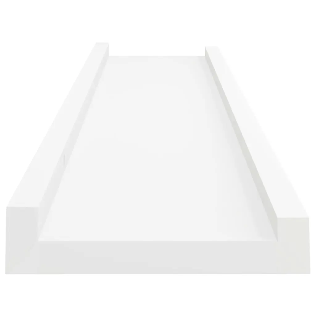 This Modern White Picture Frame Ledge Shelf Set is a brilliant addition to your home, providing a stylish and handy way to display your treasured memories and decor. With its sleek design, these wall-mounted shelves fit seamlessly into any contemporary decor while giving practical storage solutions that make the most of vertical space. Space-Saving Design: The wall-mounted feature of these ledge shelves is perfect for optimizing space in your home, allowing for impressive decor displays without taking up precious floor space. Ideal for smaller rooms and apartments, they help create a sense of openness.Durable Material: Made from MDF, these shelves are built for strength and reliability, ensuring your favorite items are safely displayed.Stylish Finish: The lacquered surface is not only nice to look at but also tough, giving a smooth shine that reflects light beautifully. This makes them an attractive backdrop for decorations, fitting perfectly in any modern home decor.Easy Installation: Featuring keyhole mounts, putting these shelves up is simple, letting you transform your space without fuss. Quickly turn any room into a stylish display area.Recommended Uses: These shelves are fab for indoor use, perfect for the living room, dining area, or bedrooms. Display your favorite photos, awards, or decorations easily!