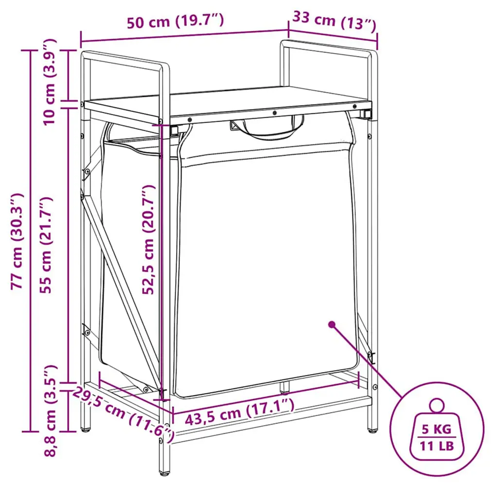 The laundry basket provides a spacious and convenient storage solution, with pull-out bags that make organising your laundry effortless.Laundry sorter: Designed to offer a generous load of laundry bag, this organiser helps maintain a clutter-free laundry area, and also store toys and more.Convenient pull-out laundry bags: The removable laundry bags are designed with pull-out handles and hook-and-loop fasteners for easy detachment and pulling. The reinforced bottom panels help maintain the bags' shape and prevent sagging.Robust and durable structure: This laundry basket combines a steel frame with durable engineered wood, offering excellent strength, wear resistance, and stability.Top storage surface: The laundry basket features a top shelf, offering a practical solution for keeping your essentials within easy reach. Perfect for storing toiletries, laundry detergents, fabric softeners, or even decorative items.Versatile and multifunctional: Perfect for the laundry room, bathroom, or bedroom, this unit seamlessly blends functionality with style, keeping your home tidy and organised while complementing various décor themes.Warning:To prevent it from tipping over, this product must be used with the provided wall attachment device.