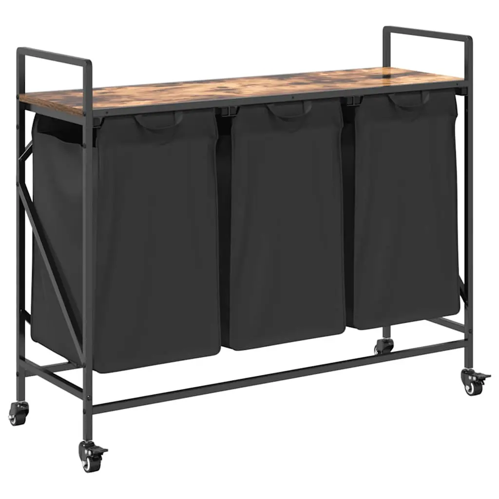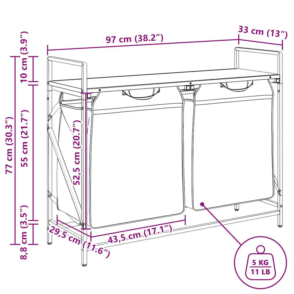 The laundry basket provides a spacious and convenient storage solution, with pull-out bags that make organising your laundry effortless.Laundry sorter: Designed to offer a generous load of laundry per bag, this organiser helps categorise garments by colour or fabric type, maintaining a clutter-free laundry area, and also storing toys and more.Convenient pull-out laundry bags: The removable laundry bags are designed with pull-out handles and hook-and-loop fasteners for easy detachment and pulling. The reinforced bottom panels help maintain the bags' shape and prevent sagging.Robust and durable structure: This laundry basket combines a steel frame with durable engineered wood, offering excellent strength, wear resistance, and stability.Top storage surface: The laundry basket features a top shelf, offering a practical solution for keeping your essentials within easy reach. Perfect for storing toiletries, laundry detergents, fabric softeners, or even decorative items.Versatile and multifunctional: Perfect for the laundry room, bathroom, or bedroom, this unit seamlessly blends functionality with style, keeping your home tidy and organised while complementing various décor themes.Warning:To prevent it from tipping over, this product must be used with the provided wall attachment device.