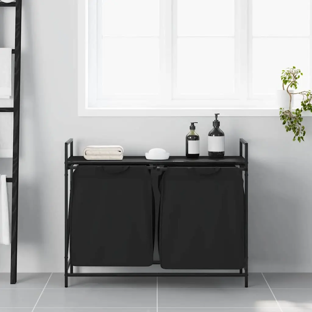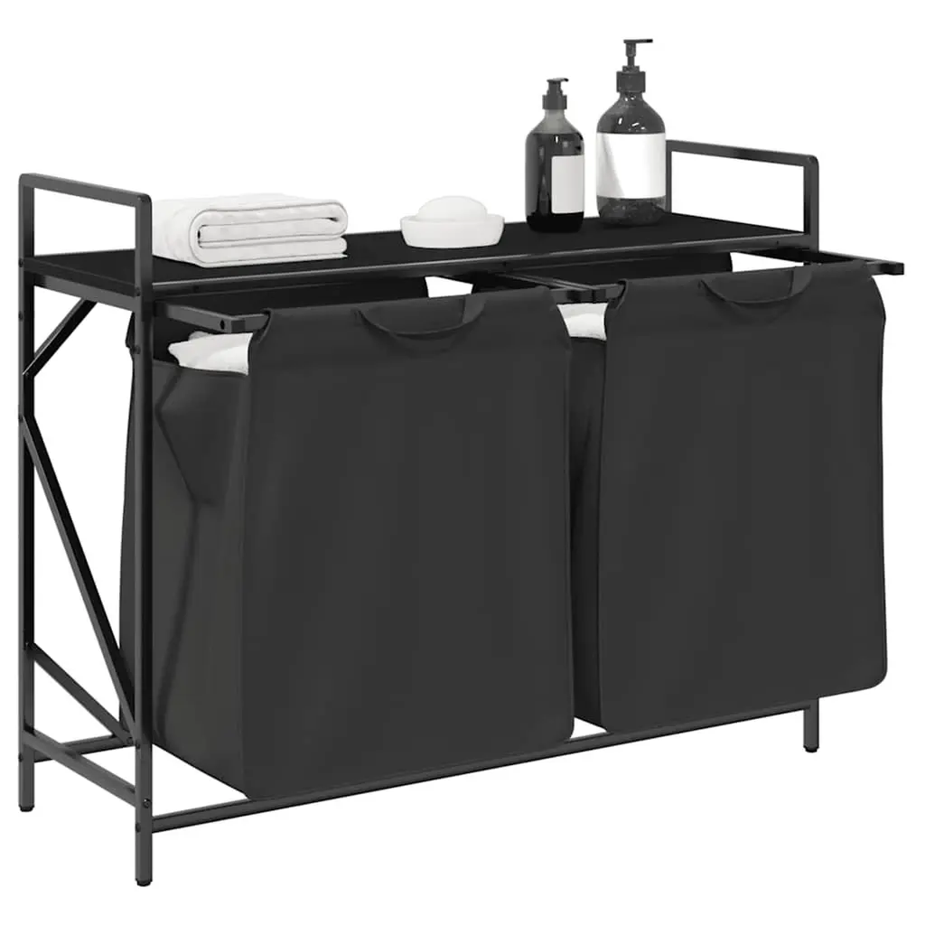 Vidaxl Laundry Basket 2 Compartments With Shelf Black Oak