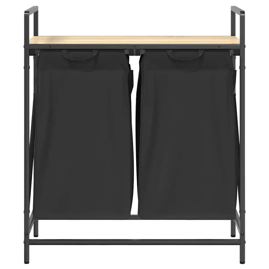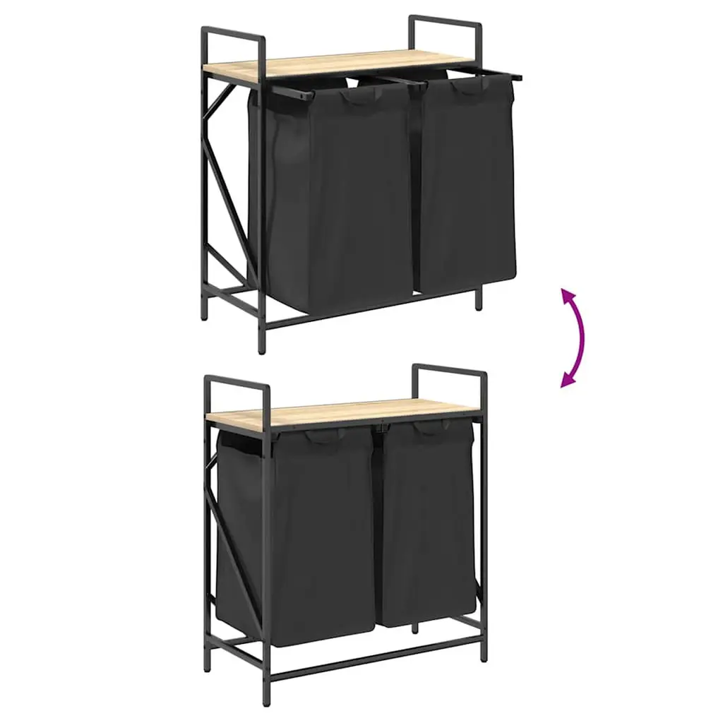 The laundry basket provides a spacious and convenient storage solution, with pull-out bags that make organising your laundry effortless.Laundry sorter: Designed to offer a generous load of laundry per bag, this organiser helps categorise garments by colour or fabric type, maintaining a clutter-free laundry area, and also storing toys and more.Convenient pull-out laundry bags: The removable laundry bags are designed with pull-out handles and hook-and-loop fasteners for easy detachment and pulling. The reinforced bottom panels help maintain the bags' shape and prevent sagging.Robust and durable structure: This laundry basket combines a steel frame with durable engineered wood, offering excellent strength, wear resistance, and stability.Top storage surface: The laundry basket features a top shelf, offering a practical solution for keeping your essentials within easy reach. Perfect for storing toiletries, laundry detergents, fabric softeners, or even decorative items.Versatile and multifunctional: Perfect for the laundry room, bathroom, or bedroom, this unit seamlessly blends functionality with style, keeping your home tidy and organised while complementing various décor themes.Warning:To prevent it from tipping over, this product must be used with the provided wall attachment device.