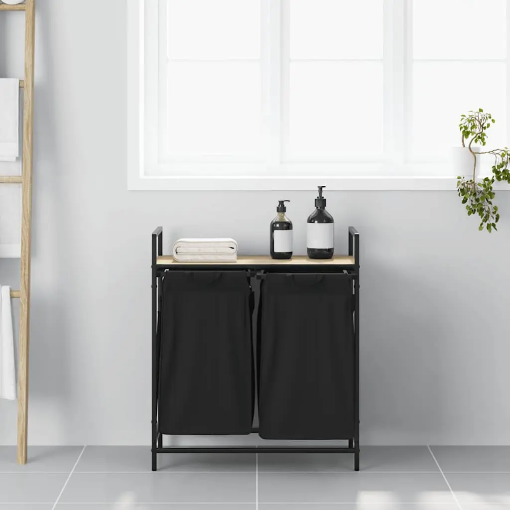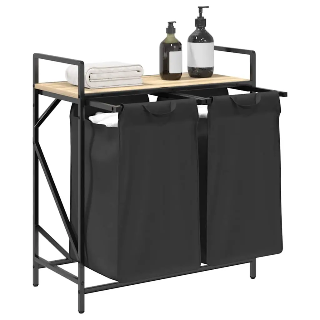 Vidaxl Laundry Basket 2 Compartments With Shelf Sonoma Oak