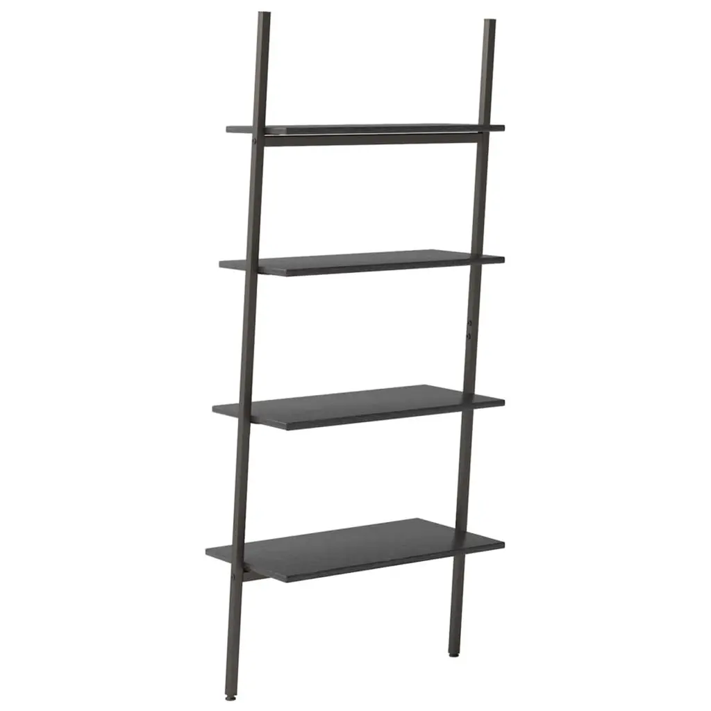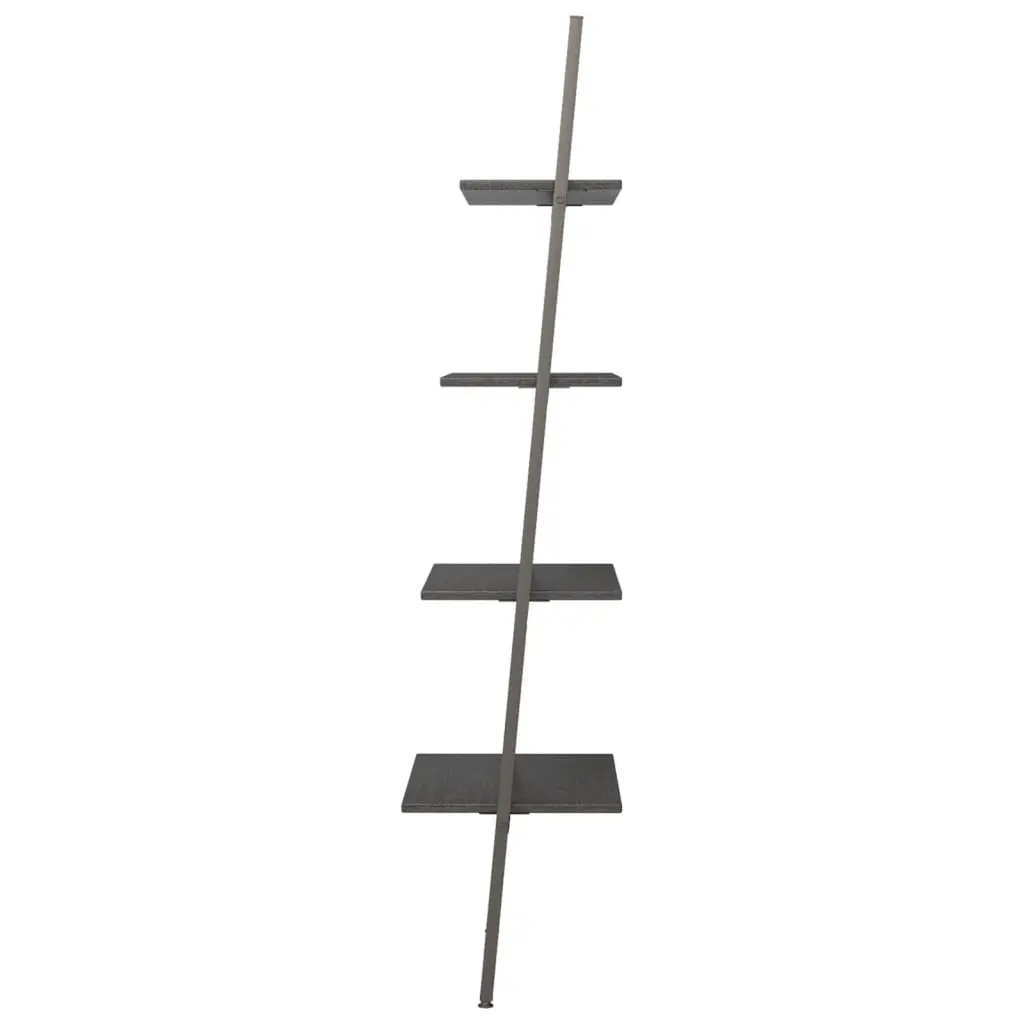 This 4-Tier Black Leaning Shelf is a stunning addition to any indoor space, perfectly blending function and modern minimalist style. With its sleek black finish and solid build, it not only suits a variety of decor but also maximizes vertical space in your living room, bedroom, or office. Ample Storage: This shelf system gives you tons of tiers to keep books, decor, or plants, creating a display that shows off your style.Minimalist Design: Its clean lines and modern build help it fit into your space seamlessly while being a functional work of art.Durable Materials: Made from engineered wood and painted steel, this shelf is built to last, holding up to 88.2 lbs, perfect for heavier items.Wall-Mounted Safety: The clever leaning design with wall-mounting keeps it stable, reducing any risk of it tipping, ideal for homes with kids.Versatile Use: Great for keeping books in order, showing off plants, or displaying treasured items, this shelf adapts to your changing tastes and needs.