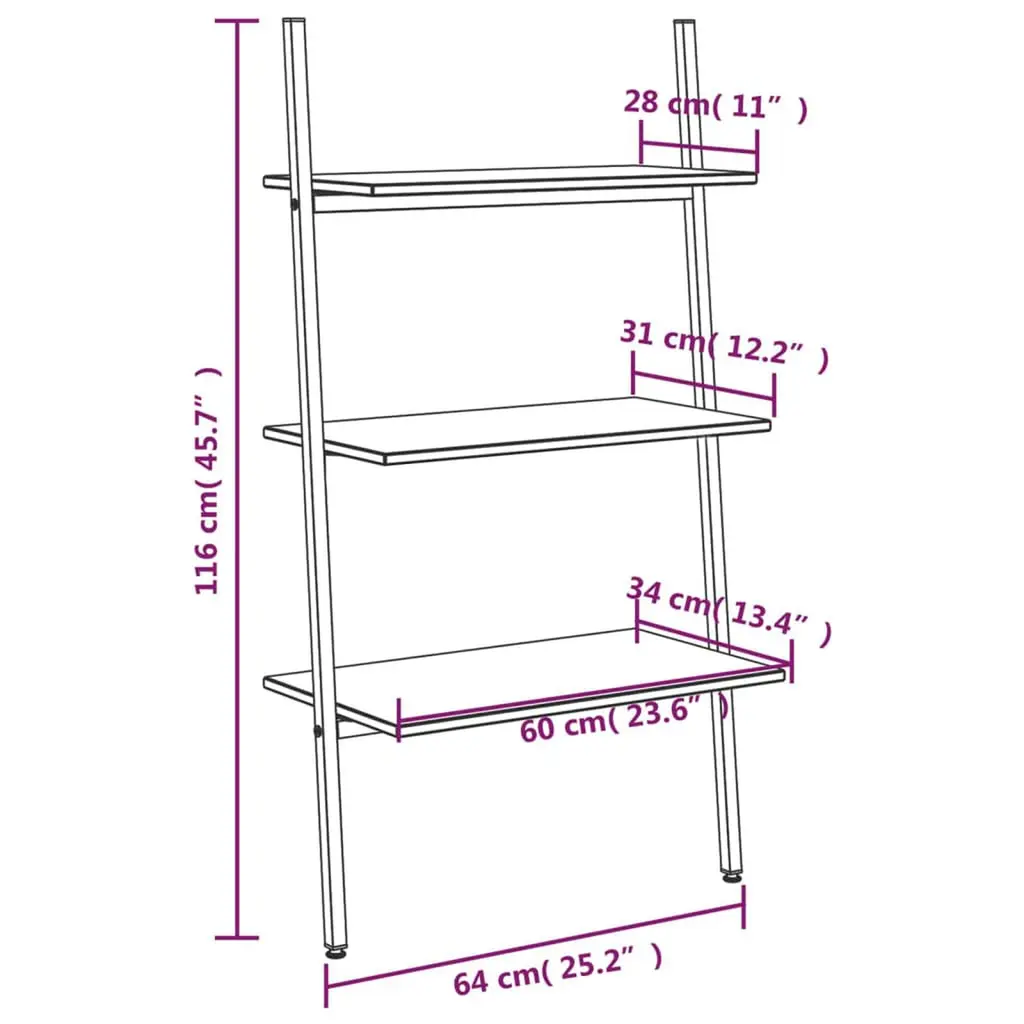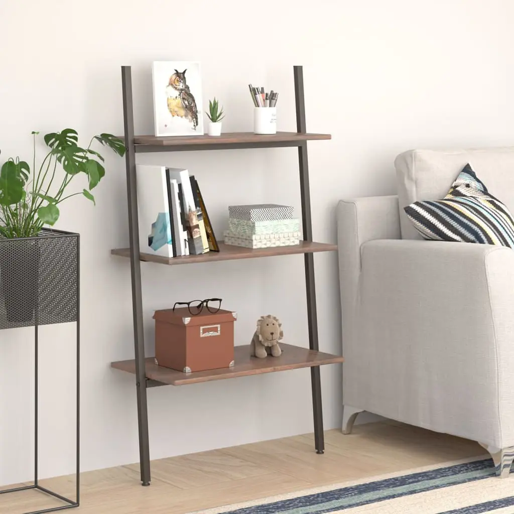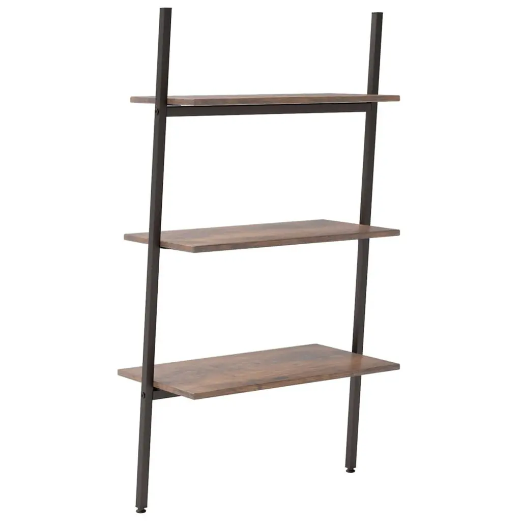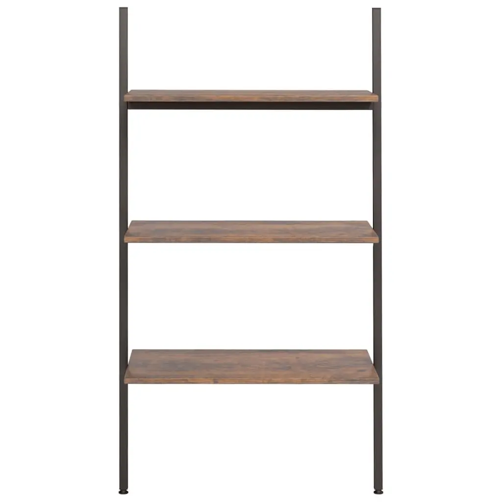 This 3-tier leaning shelf is an elegant solution for storing books, decorative items, and essentials, seamlessly blending style with function. Crafted in a chic dark brown and black finish, its minimalist design allows it to fit into various interior styles, making it perfect for living rooms, offices, or bedrooms. Plenty of storage with three shelves for all your needs.Durable construction using engineered wood and a steel frame for long-lasting use.Minimalist design that adds a touch of elegance and simplicity to any room.Leaning structure supports the shelf while saving valuable floor space.Easy care instructions for hassle-free maintenance.