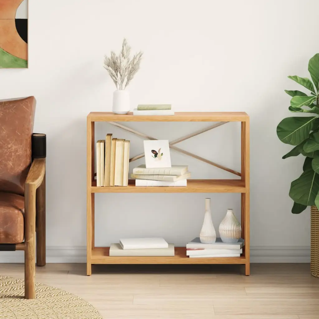 This 3-Tier Shelf made of solid oak wood combines rustic charm with practicality, making it a lovely addition to any room. With its warm medium brown stain and smooth finish, it provides a cozy feel while also acting as a handy storage solution for books, plants, or decorative pieces in your living space, bathroom, or kitchen. Plenty of Storage: The three shelves give you lots of room for your stuff and help keep things organized.Durability: Made from solid oak, this shelf is built tough for long-lasting use.Sleek Design: Its clean and simple look blends well with different styles, giving you a versatile option for any decor.Sturdy Build: With X-shaped bars, this shelf is nice and stable, keeping your things safe and secure.Easy Maintenance: A quick wipe with a cloth is all it takes to keep it looking good, no harsh chemicals needed.