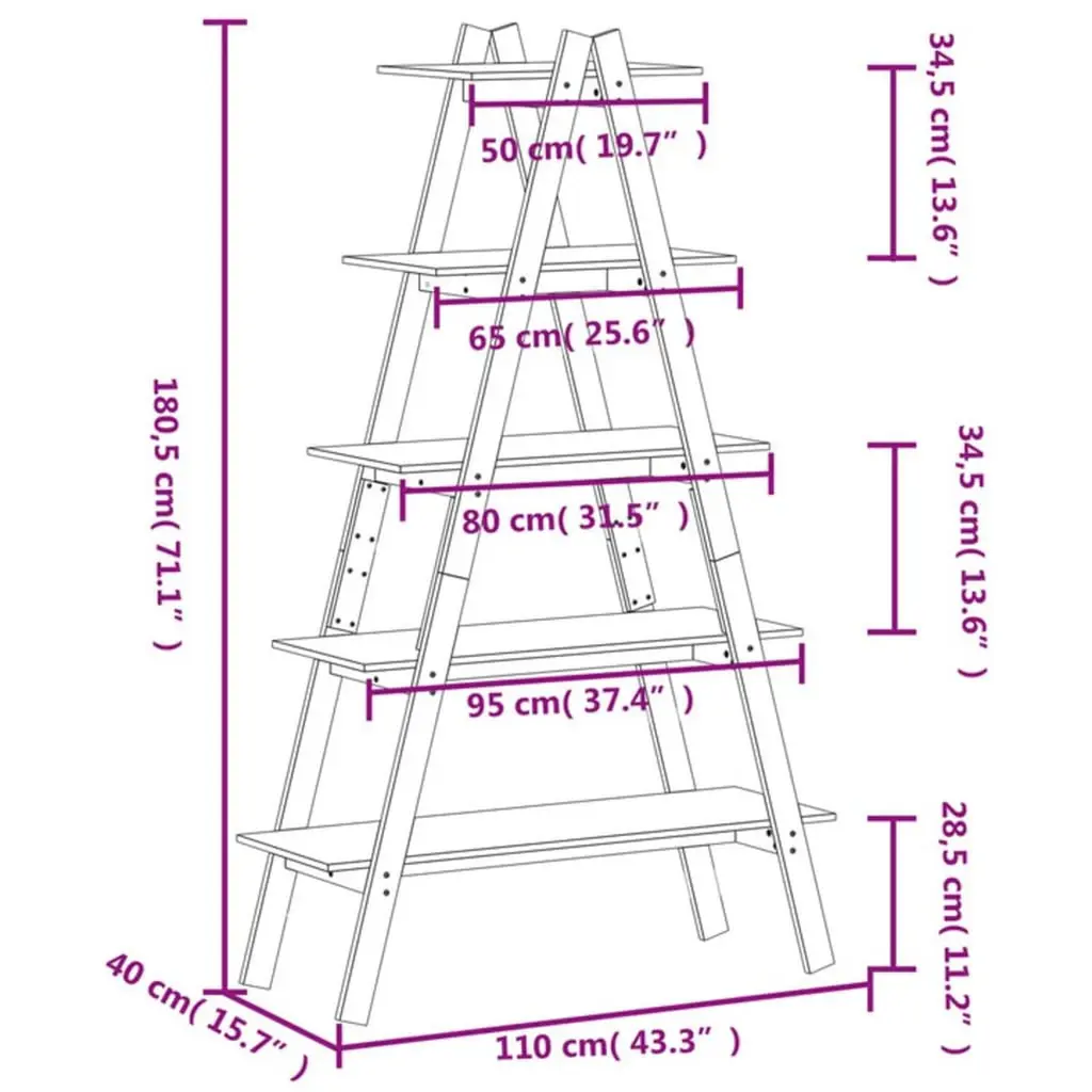 This 5-Tier A-Shape Shelf is made from solid pine wood, adding both style and functionality to your home. Its eye-catching design not only provides a sturdy structure but also brightens up the overall vibe, perfect for displaying your books, plants, or decorative bits while keeping it modern. Sturdy Construction: Made from top-notch solid pine wood, this shelf’s built for stability and lasting use. It can hold a decent amount of weight, letting you display various items with confidence.Ample Storage Space: With five spacious shelves, it’s a great fit for organizing books, plants, or any decor pieces. Each tier handles different sizes effortlessly, giving you flexibility.Multi-Functional Design: Whether it’s in the living room, kitchen, or hallway, this shelf covers a range of display needs and fits right into your home decor. Ideal for adults, it's a stylish way to keep organized.Modern A-Shape: The triangular design adds a unique touch and enhances the looks of your space. It’s contemporary and draws the eye while blending with any style.Easy Assembly: Setting this shelf up is a breeze with the included instructions—it just takes a screwdriver! You’ll have it ready in no time!