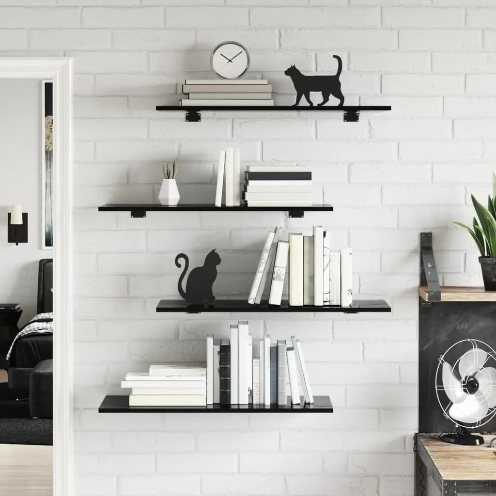 This collection of 8 wall-mounted shelves offers a handy storage solution that blends in with any room's decor. Each board measures 31.5 inches long and 11.8 inches wide, featuring a sleek high gloss black finish that enhances its modern vibe while providing a reliable spot for books, plants, or decorations. Stylish Design: The high gloss finish gives these boards a sleek look, making them a nice storage option.Durable Material: Made from engineered wood, the shelves are tough and built to last.Space-Saving: Designed to be mounted on the wall, these shelves are great for taking advantage of vertical space in any room.Versatile Uses: Perfect for living rooms, kitchens, or home offices, letting you show off your favorite items.Minimal Maintenance: The shiny surface is easy to keep clean, ensuring they look great with little effort.