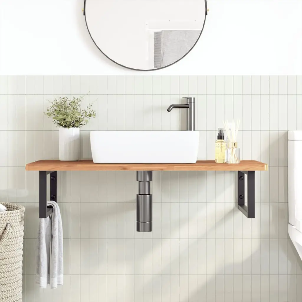 The Modern Floating Sink Shelf transforms your bathroom, blending style and practicality. Measuring 39.4 inches long, 19.7 inches wide, and 1.0 inch high, it’s a smart storage solution that looks fantastic, thanks to its rich beech wood finish and sleek metal brackets. It’s perfect for adding a sophisticated touch to your decor while keeping things light and organized. Built from solid beech wood for durability and style with its smooth, natural finish.Features a sleek floating design, maximizing wall space while keeping your bathroom tidy.Easy to install with several mounting options, perfect for fitting your bathroom layout.Great for storing essentials like toiletries, plants, or decor items, making it super versatile.Finished with a durable lacquer that protects against moisture and wear, helping it stay charming for years.