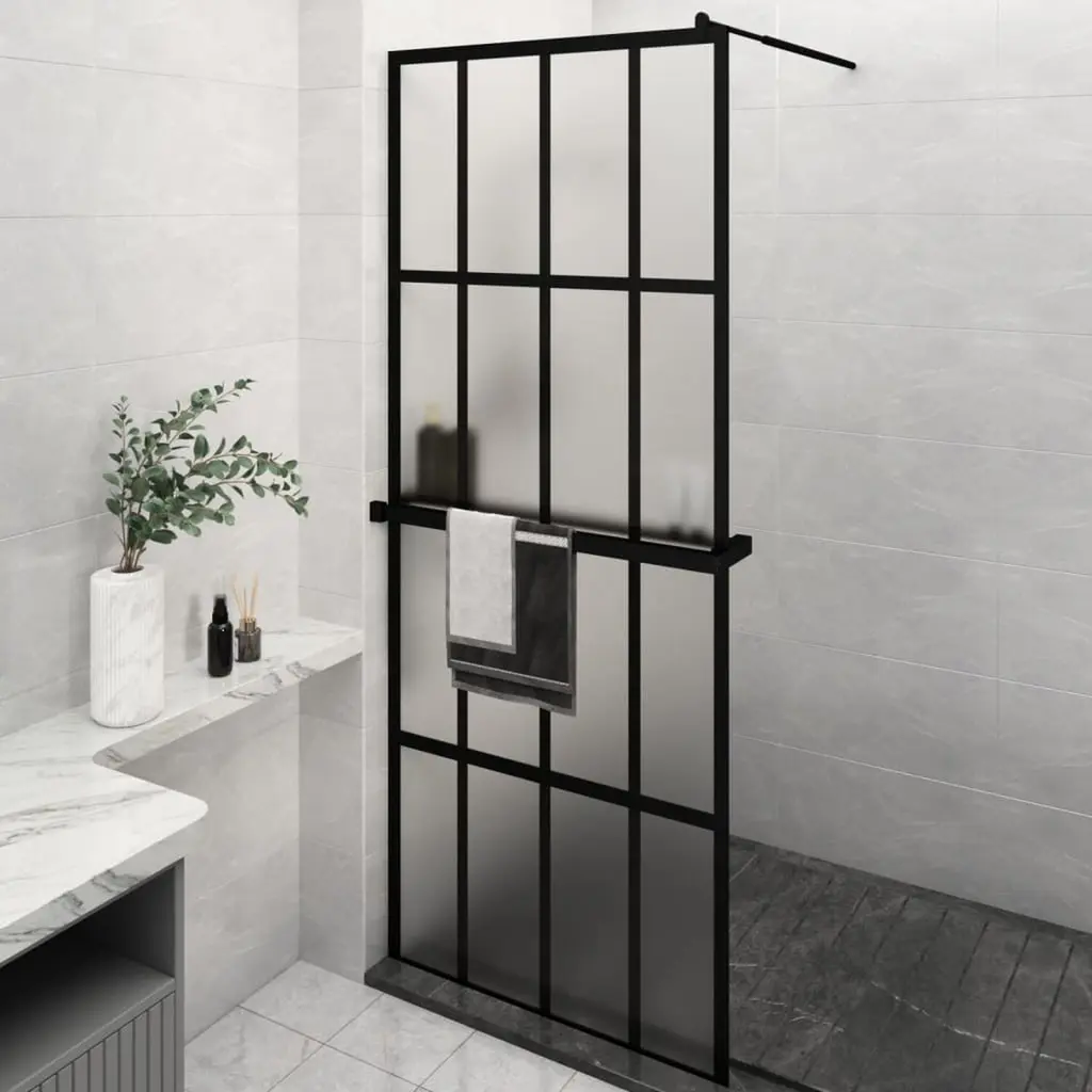Vidaxl Walk-In Shower Wall With Shelf Black 31.5"x76.8" Esg Glass&aluminum