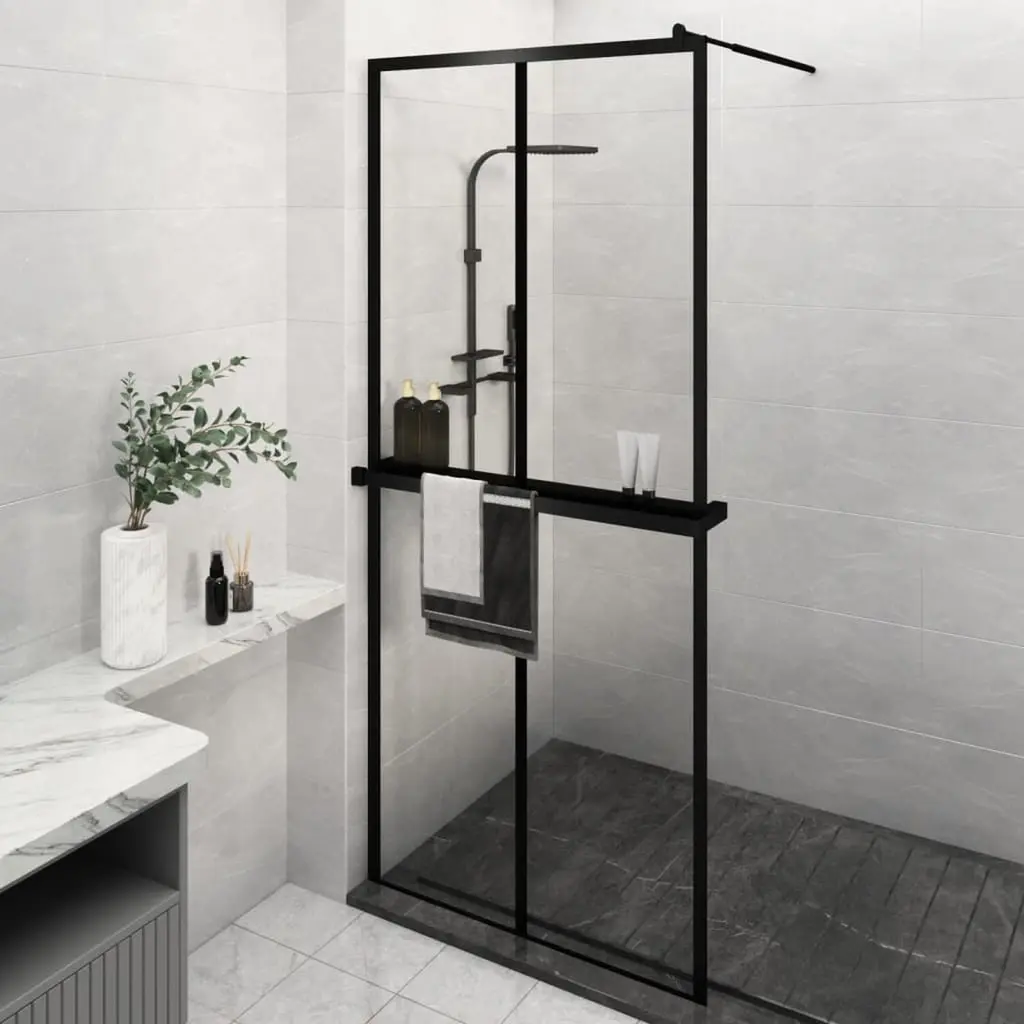 Vidaxl Walk-In Shower Wall With Shelf Black 35.4"x76.8" Esg Glass&aluminum