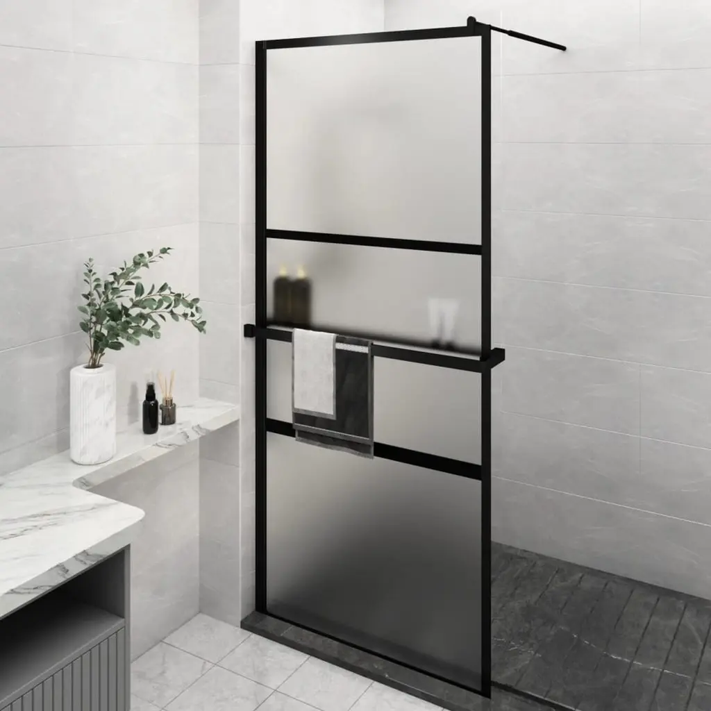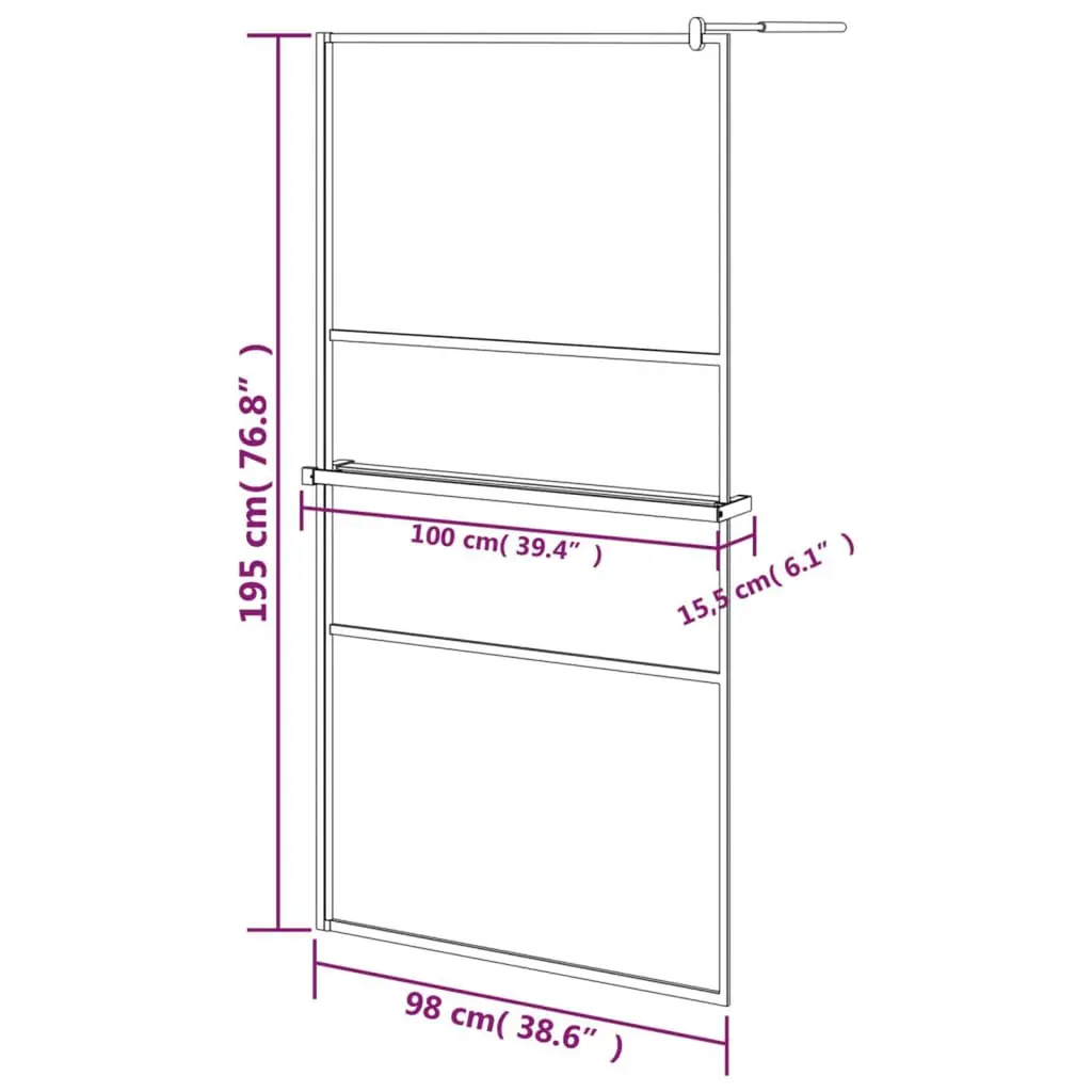Vidaxl Walk-In Shower Wall With Shelf Black 39.4"x76.8" Esg Glass&aluminum