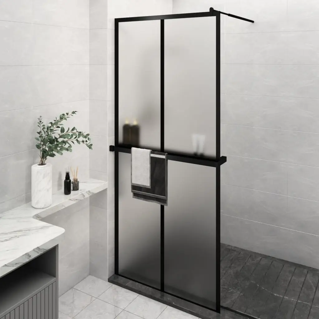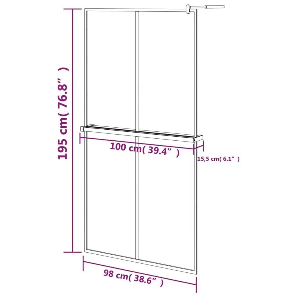 Vidaxl Walk-In Shower Wall With Shelf Black 39.4"x76.8" Esg Glass&aluminum