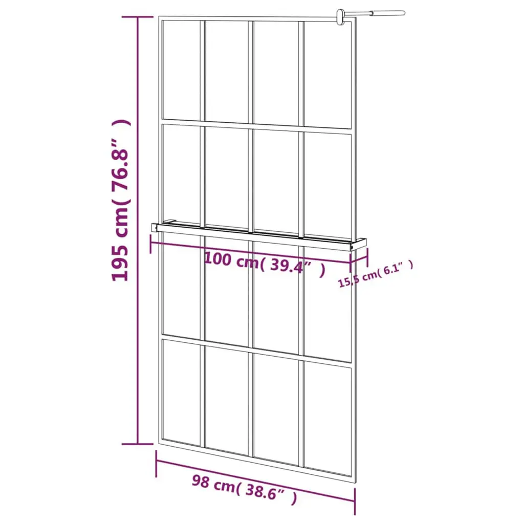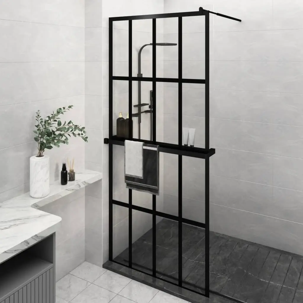 Vidaxl Walk-In Shower Wall With Shelf Black 39.4"x76.8" Esg Glass&aluminum