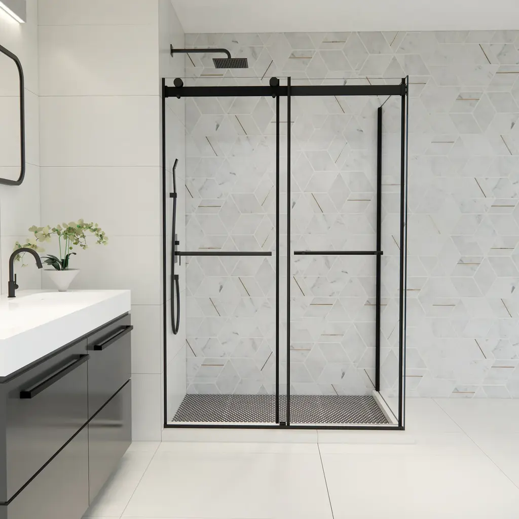 Bring a fresh appearance of aesthetics to your bathroom with our modern walk-in shower wall with a shelf!Good to know: