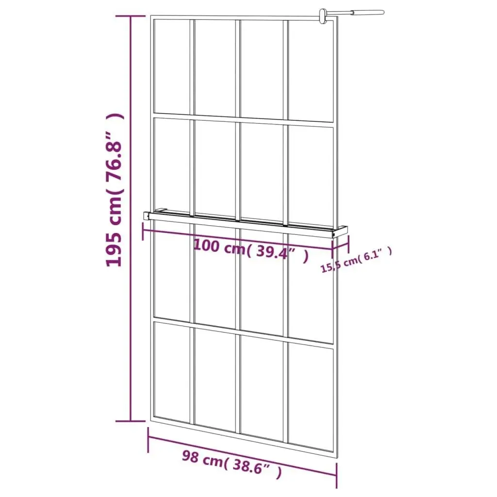 Vidaxl Walk-In Shower Wall With Shelf Black Esg Glass&aluminum - 39.4" X 76.8" - Black