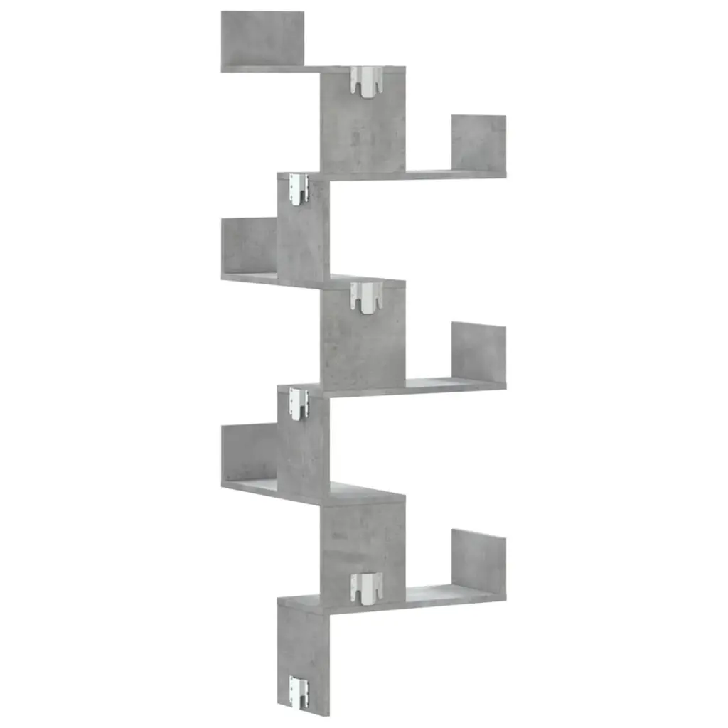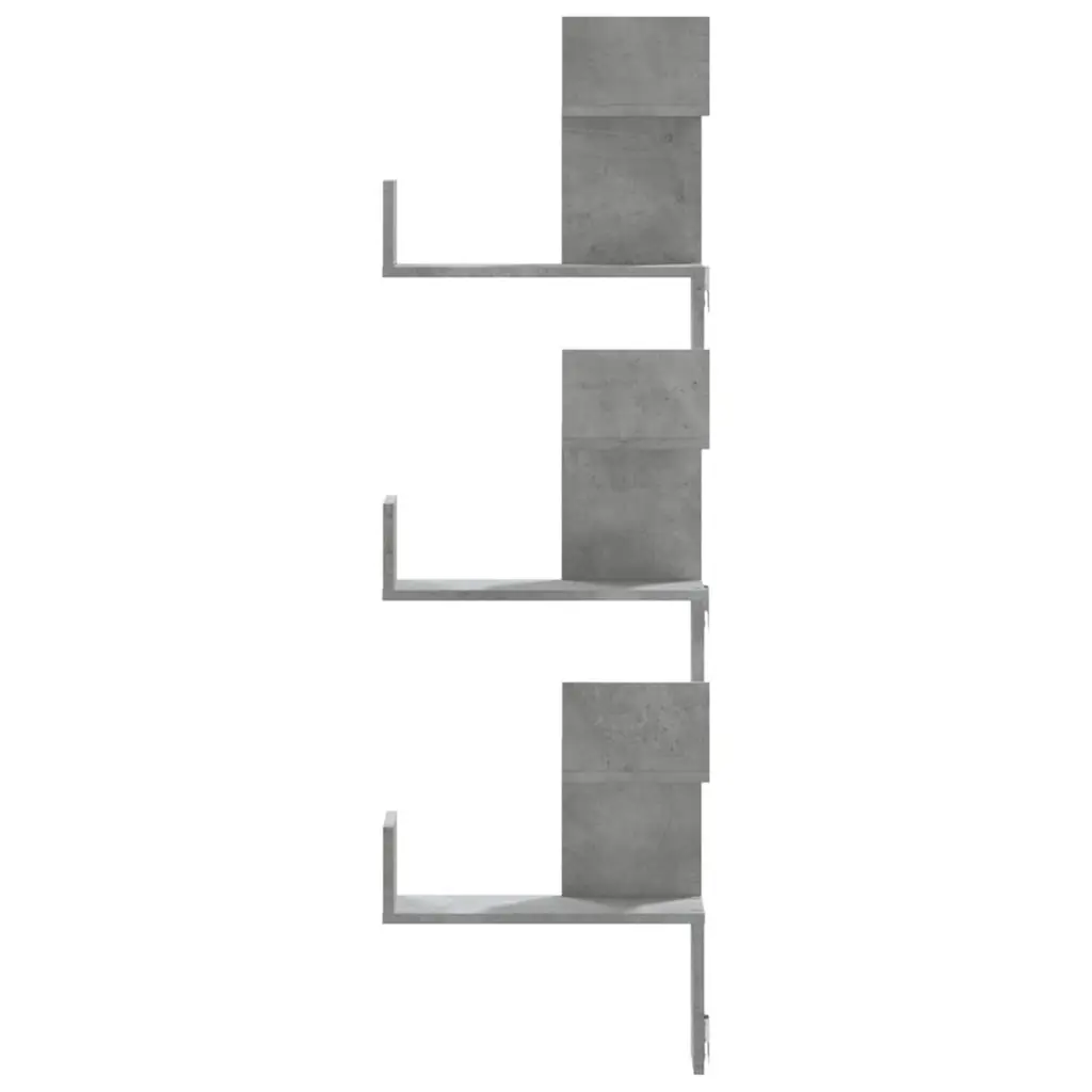 This wall corner shelf strikes the ideal balance between function and style. It's made just for corners in your home or office, and its classy concrete grey finish gives a modern flair to your decor. It's perfect for displaying books, ornaments, or plants while saving precious floor space. Space-Efficient: This corner shelf is cleverly made to boost your storage options without hogging floor space, fitting like a glove into any corner.Generous Storage Capacity: With a solid weight limit of 132.3 pounds, there's loads of room for your fav items, from books to collectibles.Modern Look: The smooth concrete grey finish and sleek lines give a sophisticated vibe that enhances your room's style, while making your displayed items pop.Simple Installation: Easy to mount on the wall, this shelf provides a strong storage solution without the need for messy brackets, keeping things neat and tidy.Sturdy Build: Made from quality engineered wood, this shelf looks fantastic and is built to last, keeping its top-notch look even with regular use.
