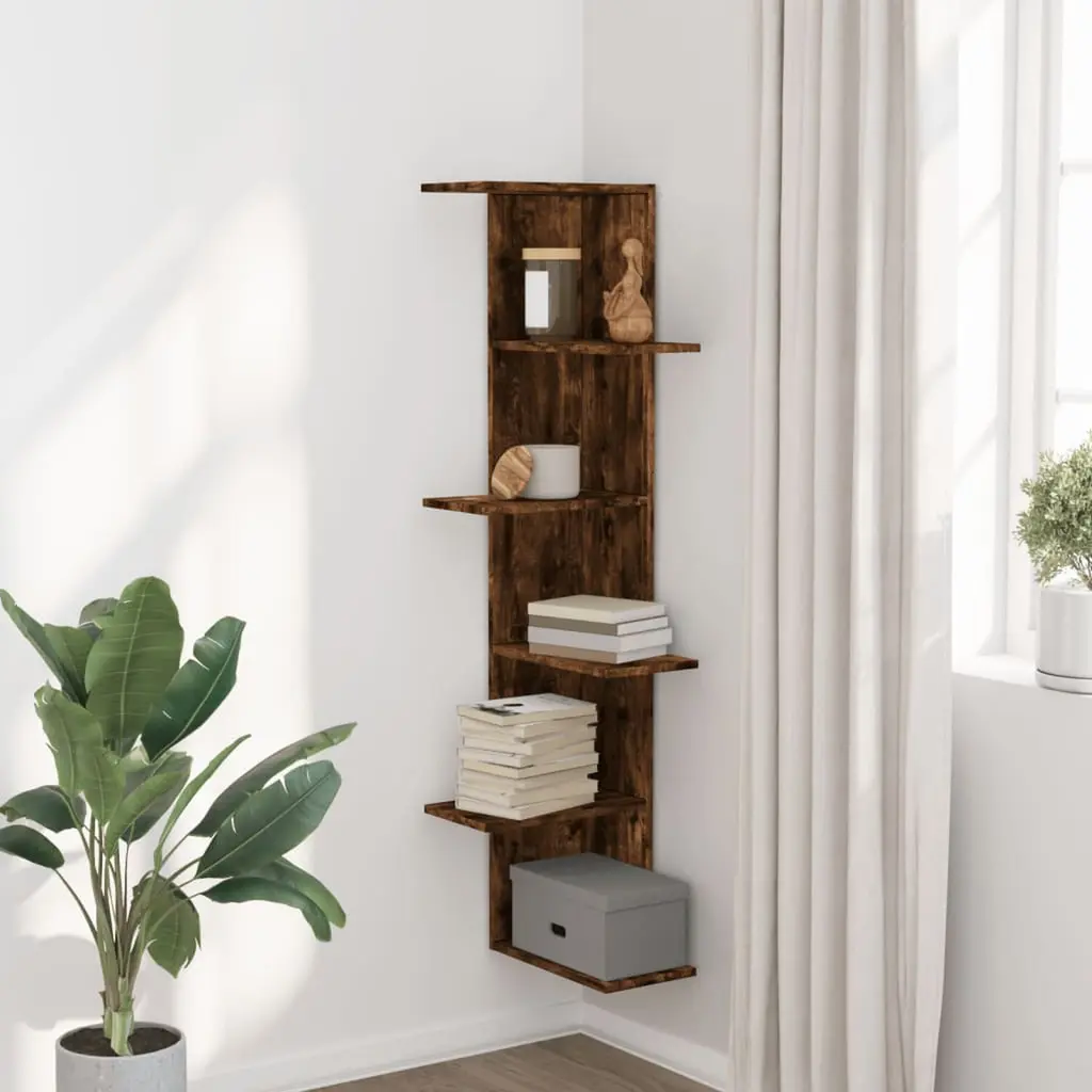 Vidaxl Wall Corner Shelf Smoked Oak Engineered Wood 55.1 In Height