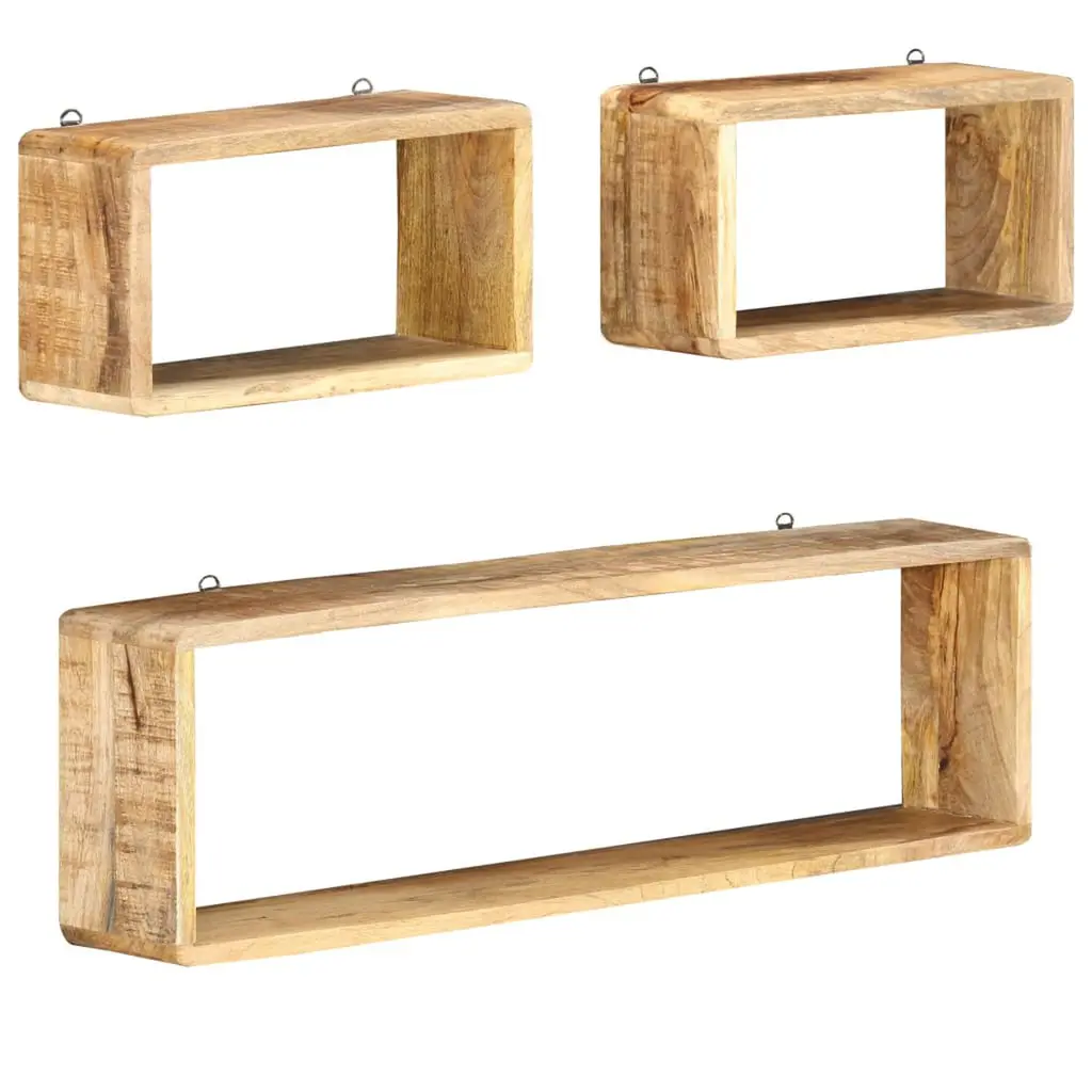 This 3 Piece Wall Cube Shelf Set brings both style and practical use to your space. Made from solid mango wood with a rustic finish that shows off its natural beauty. The cubes are perfect for storing or displaying your decor items, books, or treasured collectibles, making for a visually appealing setup that brightens up any room. 【Stylish Rustic Design】 Crafted from solid mango wood, each shelf adds warmth with its unique wood grain, making it perfect for any rustic or contemporary home. 【Versatile Storage】 With three cube compartments, these shelves give you loads of room for books, awards, or decor items, keeping your living area neat and tidy. 【Easy to Install】 The wall-mounted design keeps it stable while looking like they’re floating, saving floor space without losing style. 【Smooth Finish】 The lacquered surface boosts the wood's color and makes it durable, easy to keep clean and scratch-resistant. 【Great for Any Room】 Perfect for the living room, bedroom, or office, these floating shelves show off your personality through your decor.