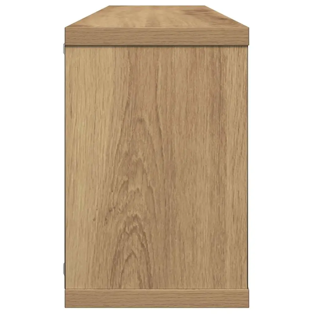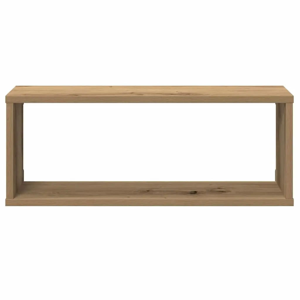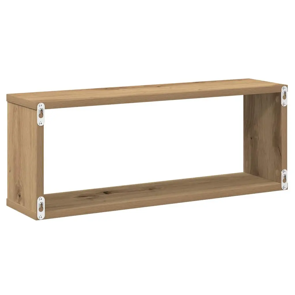 This wall-mounted cube shelf set is a fantastic mix of style and functionality, making it a perfect storage option for any indoor space. Made from engineered wood with an artisan oak finish, it adds a touch of modern class to your living room or bedroom while giving you plenty of storage for books, decor, or collectibles. Ample Storage: With two cube shelves at 23.6 x 5.9 x 9.1 in, there's plenty of space for your bits and bobs. Perfect for showing off decor or keeping essentials tidy and close at hand.Stylish and Modern: With a matte finish and smooth surface, these shelves look as good as they function. The artisan oak color fits in with any modern decor, adding warmth and style.Space-Saving Option: Being wall-mounted makes the most of your space, especially in smaller living areas, keeping your rooms clear and airy.Easy to Install: Setup’s a breeze with clear instructions. Wall fixtures aren’t included, but it’s really straightforward for DIY fans.Versatile Usage: These cube shelves work in all kinds of rooms – living areas, bedrooms, or home offices. Perfect for displaying photos, books, plants, or knick-knacks, they’re a great all-rounder.