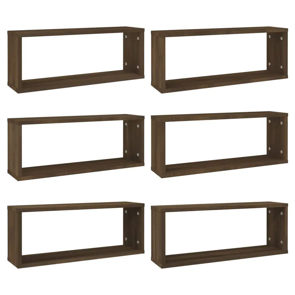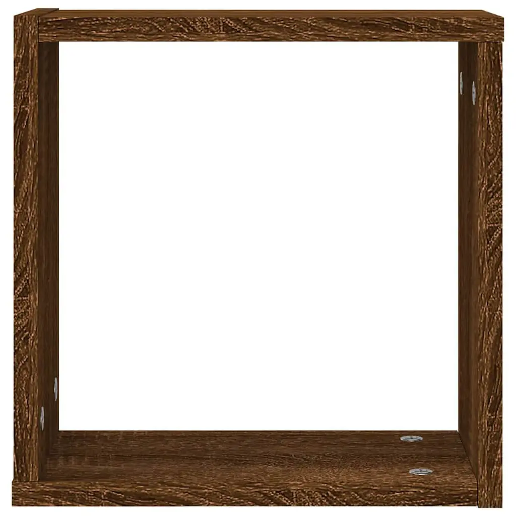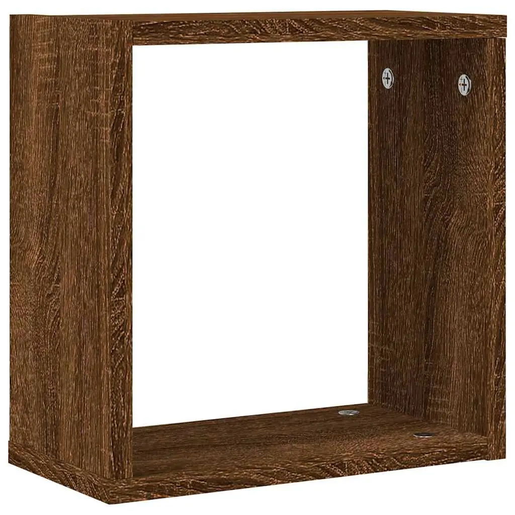 This set of Brown Oak Wall Cube Shelves mixes style and function, giving you a contemporary way to display and store your belongings. With clean lines and a minimalist look, these shelves are perfect for sprucing up your living room, office, or study, while also providing ample space for your favorite books, photos, or collectibles. The wall-mounted design saves floor space, perfect for smaller rooms while providing a classy display option.Made from engineered wood, these shelves are sturdy, long-lasting, and have a sleek matte finish for a modern touch.With cube-shaped compartments, they’re ideal for both decoration and practical use, allowing you to showcase various items with ease.Install easily with the right tools; these shelves come with mounting points for a quick setup, giving your space an instant upgrade.Each set includes two shelves measuring 11.8x5.9x11.8 in., giving you plenty of room for different display or storage needs.