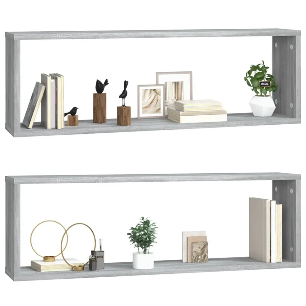 Vidaxl Wall Cube Shelf Set Of 2 Grey Sonoma Engineered Wood Medium