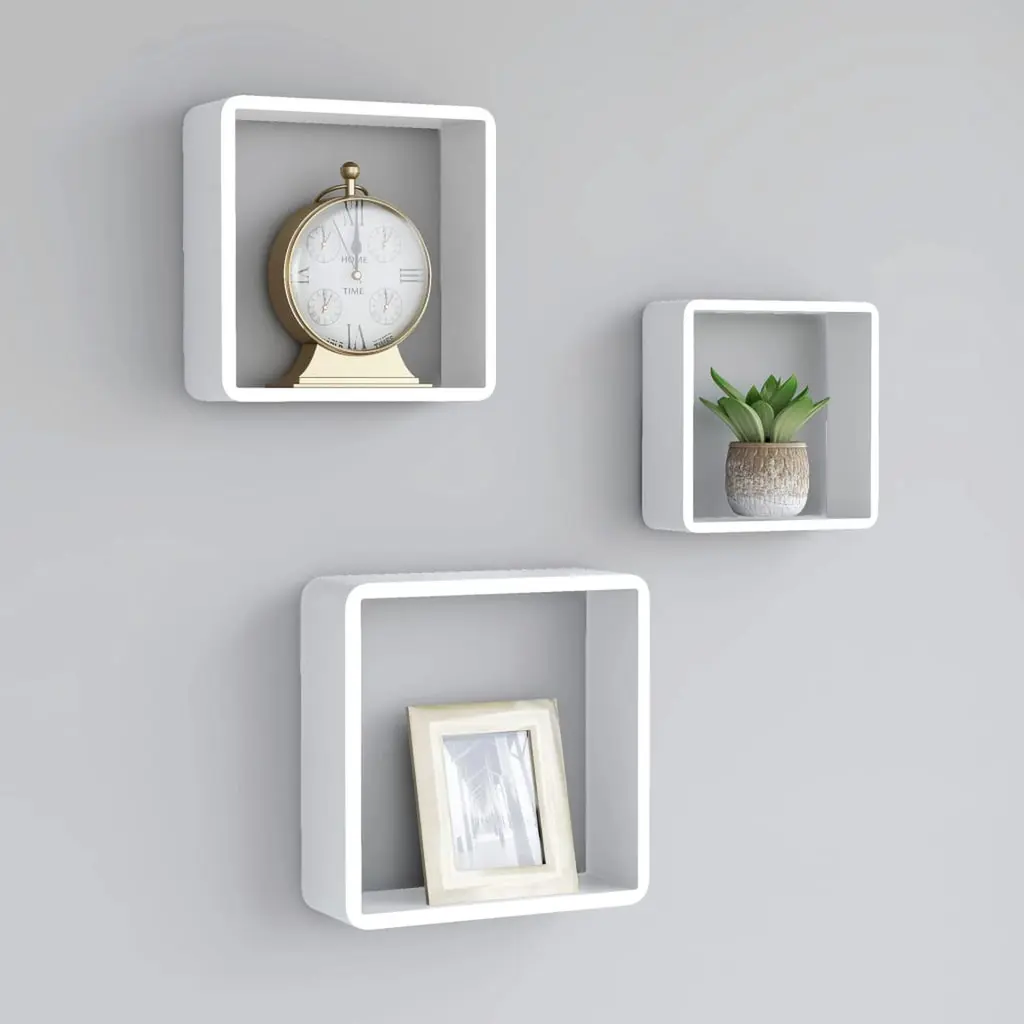 This 3-piece wall cube shelf set gives you a stylish way to show off your favorite decor and organize small collectibles. With its clean and modern design, these MDF shelves fit right in any living rooms, bedrooms, or home offices, adding both function and style to your space. The wall-mounted shelves are spot on for clearing clutter while showing off personal items like photos, plants, or books in style.Built from solid MDF wood, this set guarantees lasting durability, easily handling all your special stuff while catering to both style and practicality.Each shelf’s modern square shape matches various interior styles, making it a breeze to add a touch of simplicity without losing out on taste.The matte white finish boosts the shelves’ versatility, letting them blend effortlessly with any color scheme for a polished look throughout your room.With dimensions of 11 x 11 x 3.9 in, this set fits perfectly in snug spots while providing plenty of storage options, making it a fit for any area in your home.