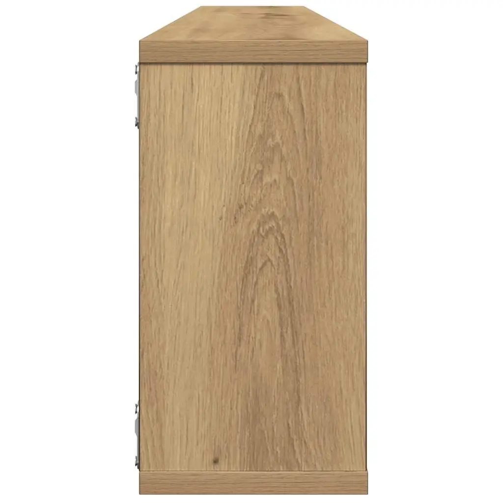 This wall cube shelf set gives you a stylish and modern way to show off your treasured pieces while keeping your space neat and organized. With engineered wood in a gorgeous artisan oak finish, these shelves add a lovely focal point to any room, perfect for displaying photos, books, or decorative bits, boosting both functionality and style. Stylish Aesthetics: The artisan oak finish gives a warm, welcoming look that complements any modern design, enhancing both urban and cozy vibes. Plus, the matte finish keeps it from reflecting light, suiting all lighting moods.Space Efficiency: These wall-mounted cube shelves free up valuable floor space while offering a lovely display area. Fab for smaller living areas where every inch counts, they help create visual flair without overcrowding.Functional Versatility: Use the shelves for all sorts of things, like displaying decorations, books, or personal treasures, making them perfect for living rooms, bedrooms, or studies. Their rectangular shape works for both vertical and horizontal setups, depending on what you fancy.Quick Installation: Each shelf can be mounted easily with just a few tools, making home styling a breeze. All the bits needed for mounting (screws and fixings) are included for a speedy setup.Robust Construction: Made from sturdy engineered wood, these shelves can hold a good amount of weight, letting you keep everything from loads of novels to precious collectibles while ensuring they last.
