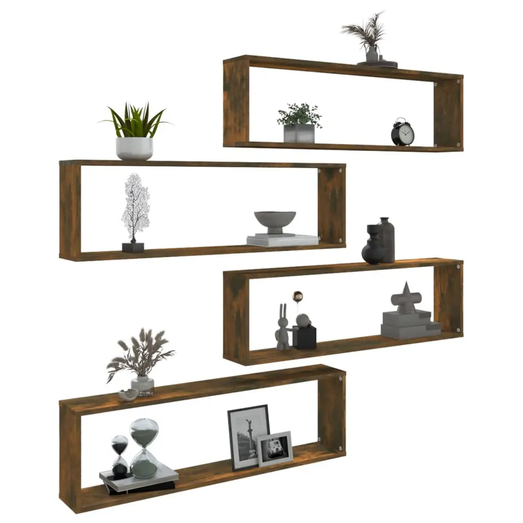 Vidaxl Wall Cube Shelf Set Of 4 Smoked Oak Engineered Wood Standard
