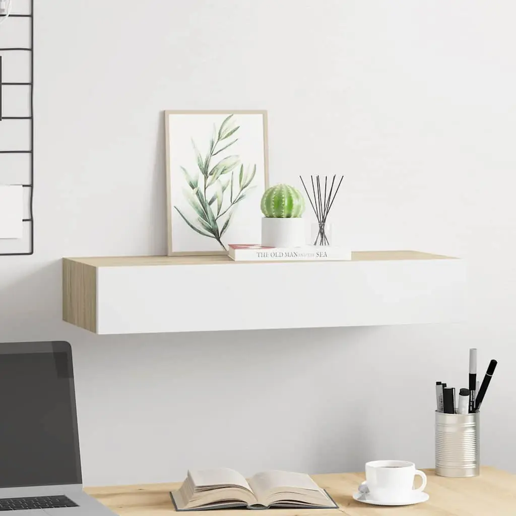Vidaxl Wall-Mounted Drawer Shelf Oak And White 60x23,5x3.9 " Mdf
